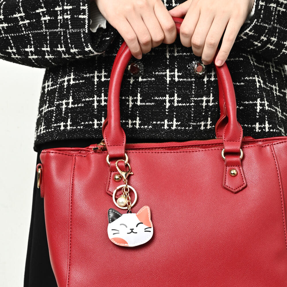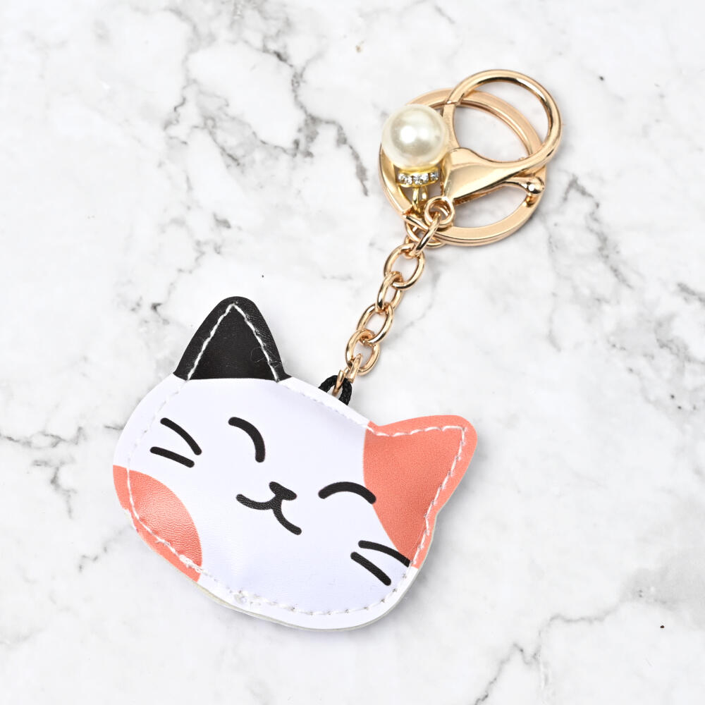 キーホルダー バッグチャーム レディース 猫 ネコ ねこ 三毛猫 パール 可愛い プレゼント KH