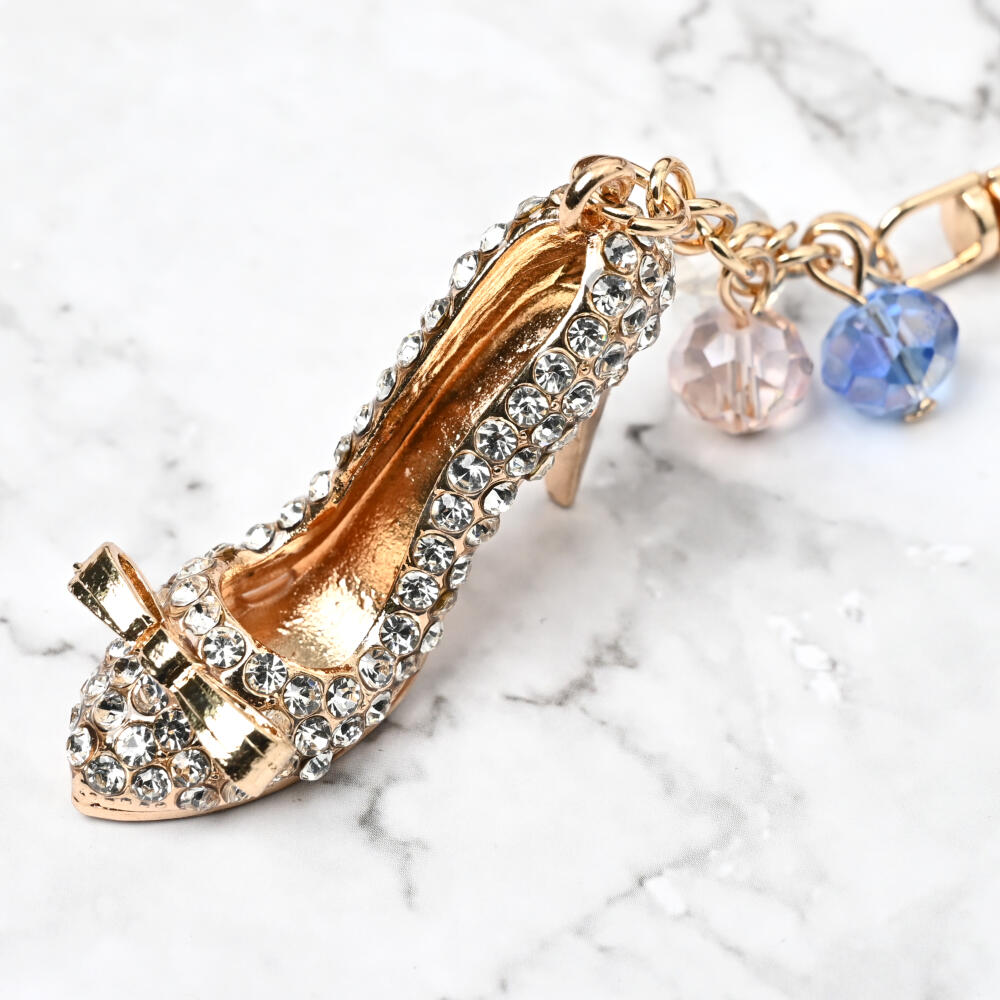 キーホルダー バッグチャーム レディース ハイヒール リボン ゴールド ラインストーン キラキラ KH