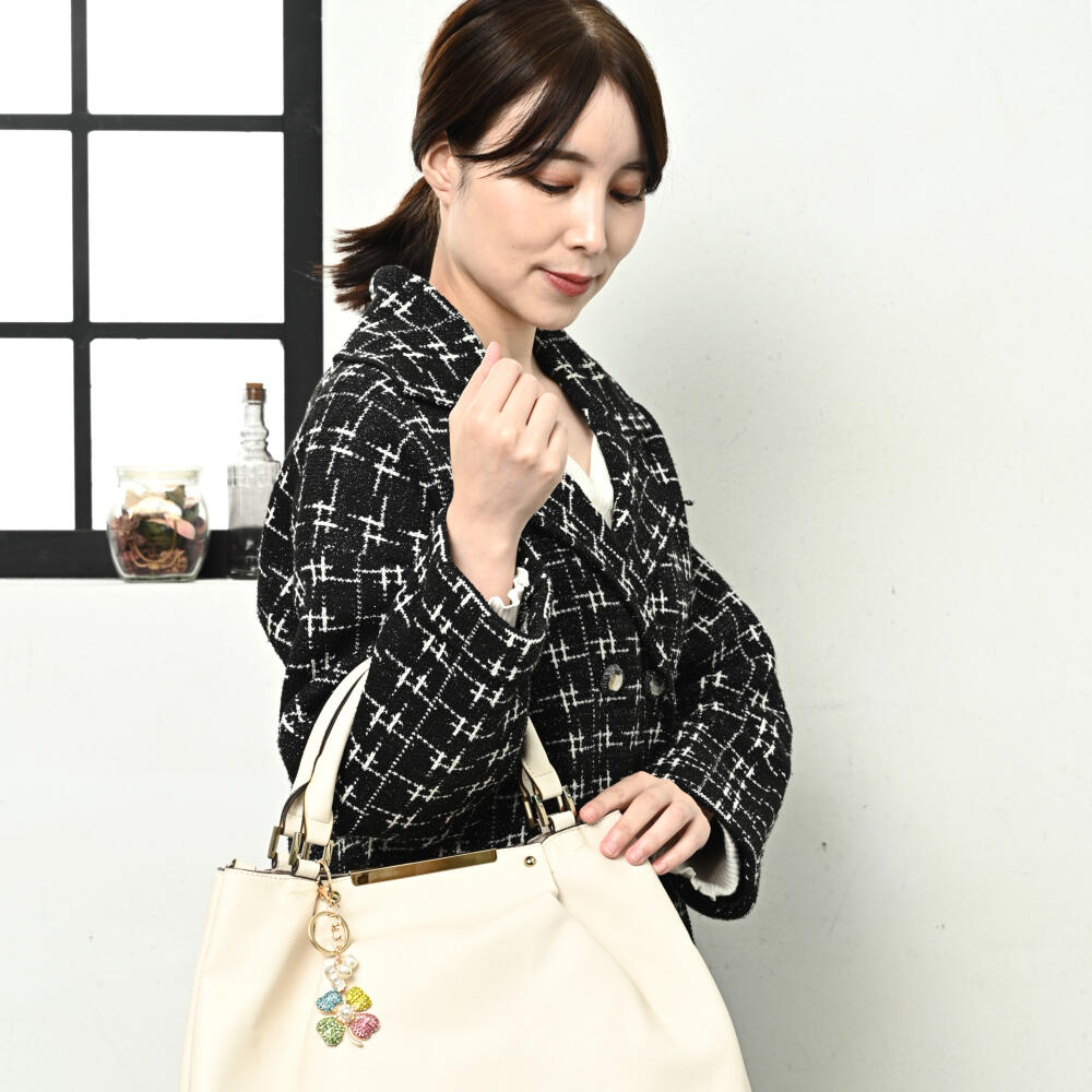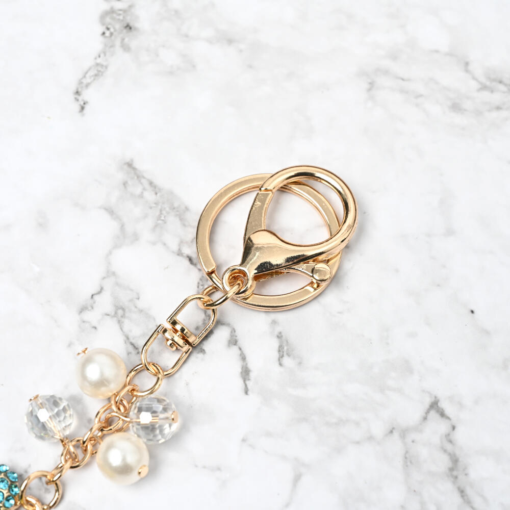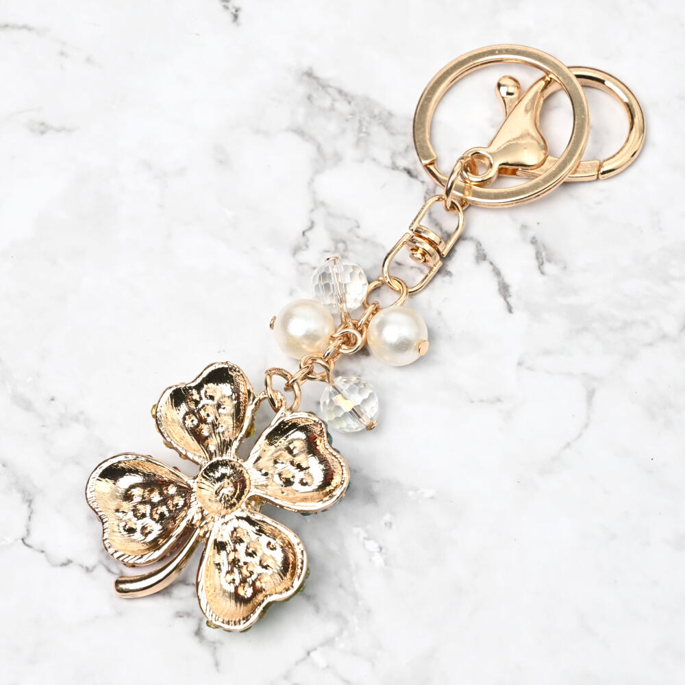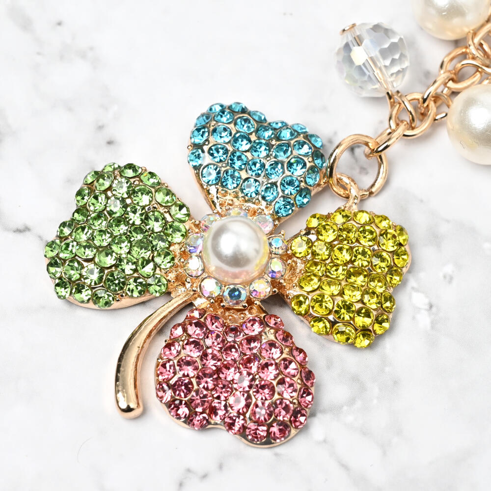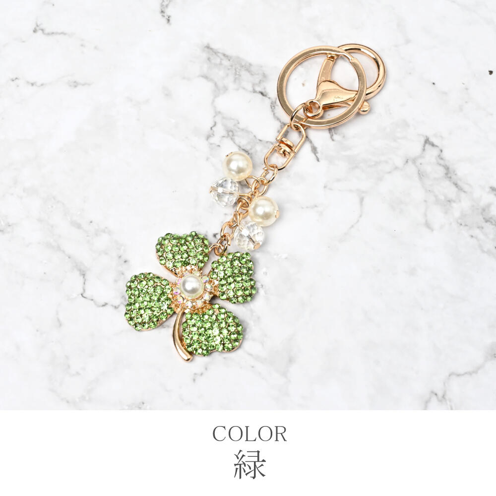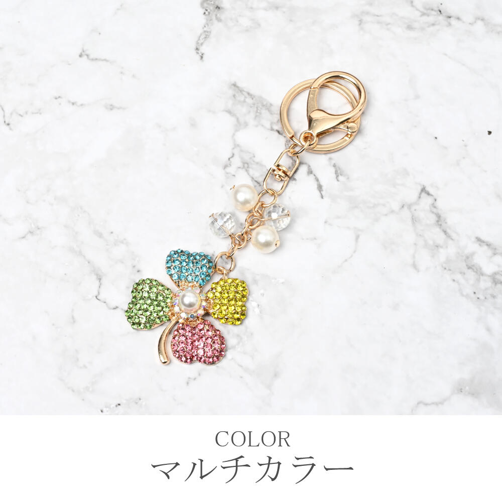 キーホルダー バッグチャーム レディース クローバー 四葉 ラインストーン キラキラ マルチカラー KH