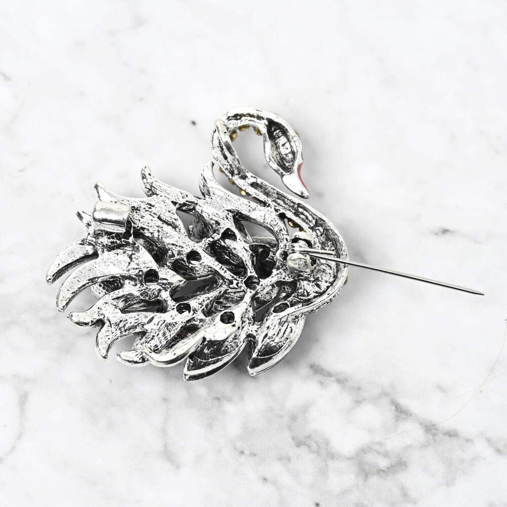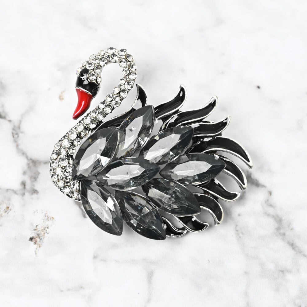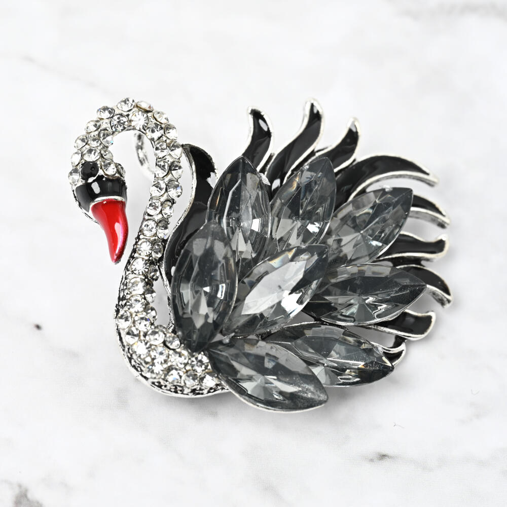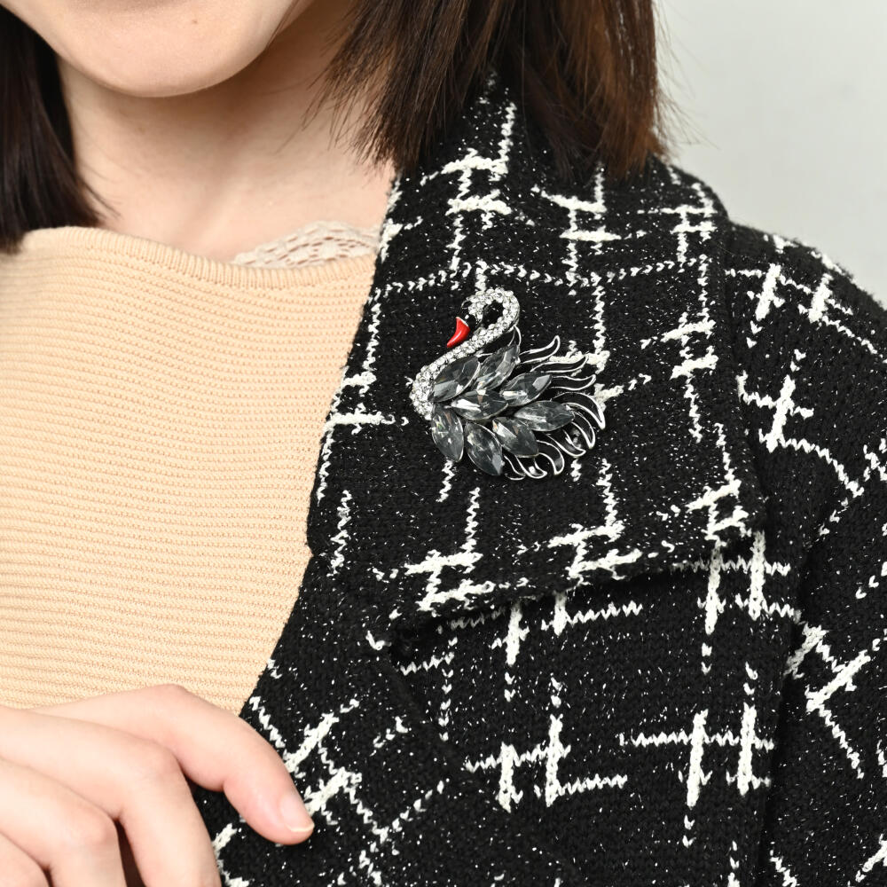 ブローチ レディース 白鳥 スワン ブラックスワン キラキラ ビジュ お洒落 黒 プレゼント BR