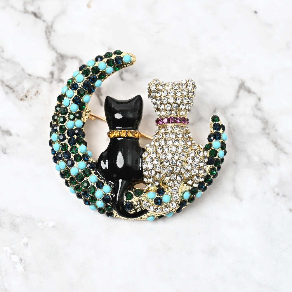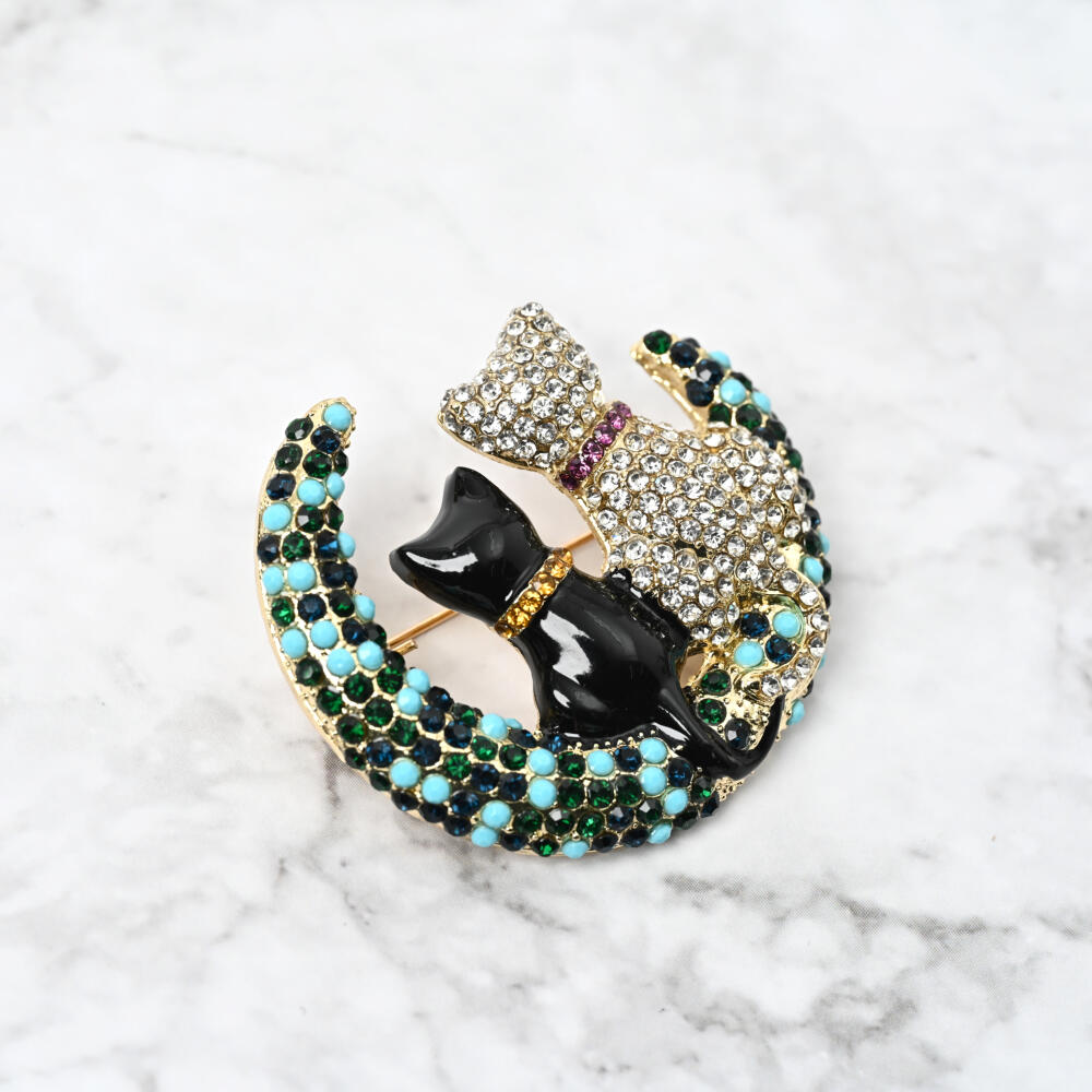 ブローチ レディース 猫 ネコ ねこ 三日月 シルエット キラキラ ラインストーン プレゼント BR