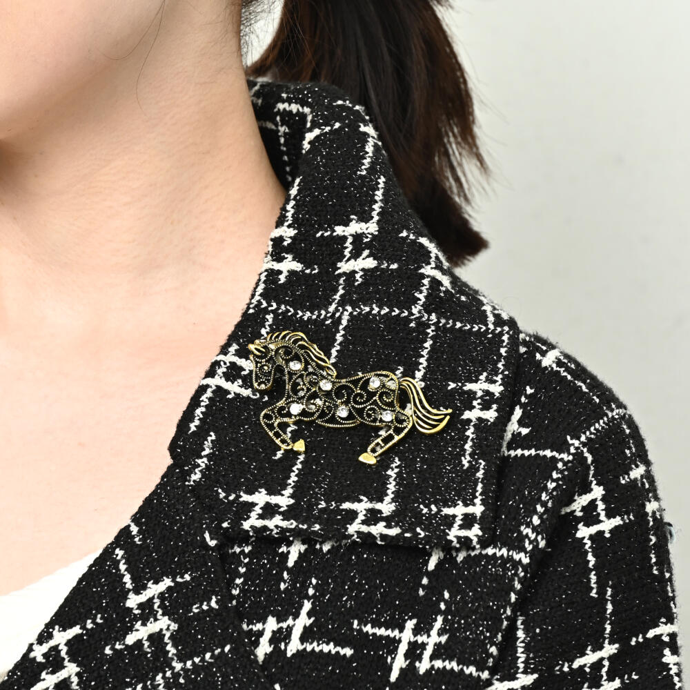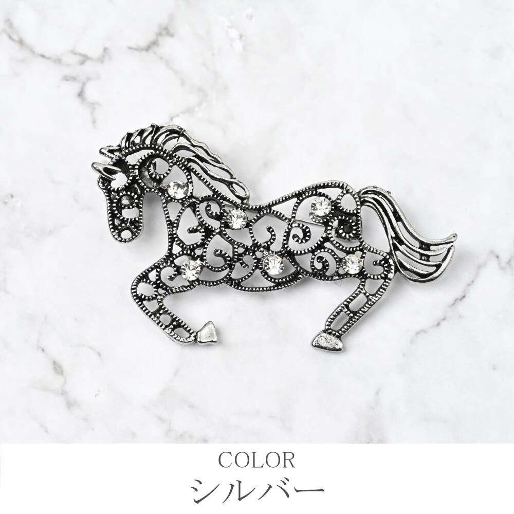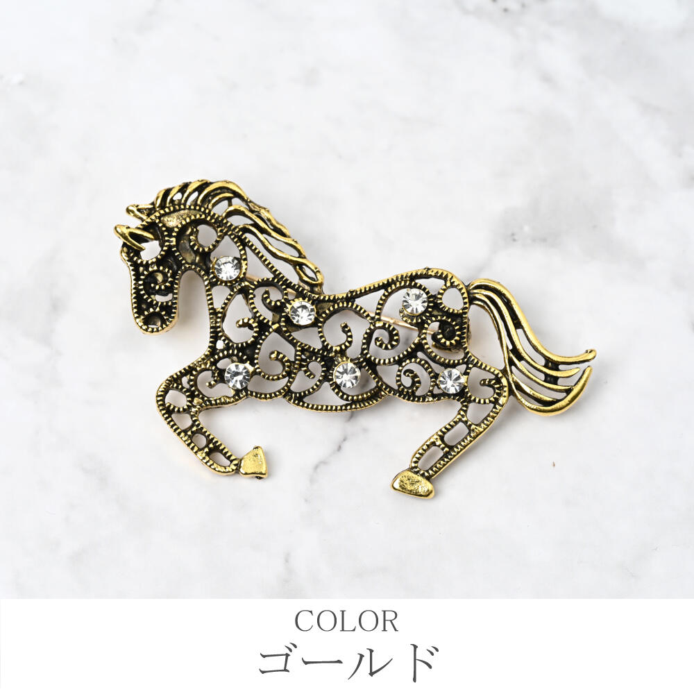 ブローチ レディース 馬 午 うま ウマ 干支 十二支 新年 迎春 透かし キラキラ プレゼントBR