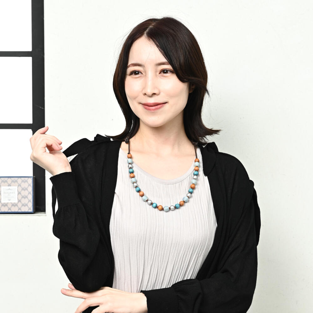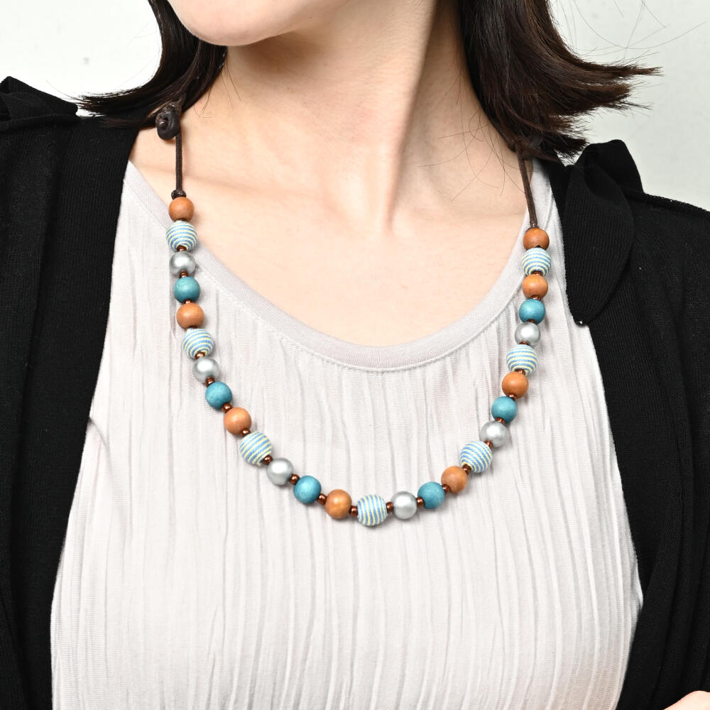 ネックレス レディース ウッド ボーダー 縞模様 青 マリン 夏 天然素材 カジュアル N