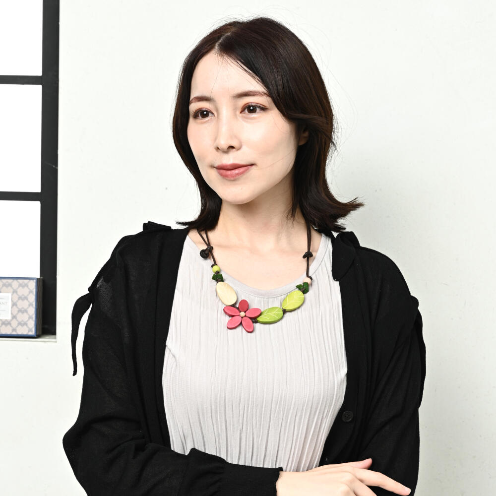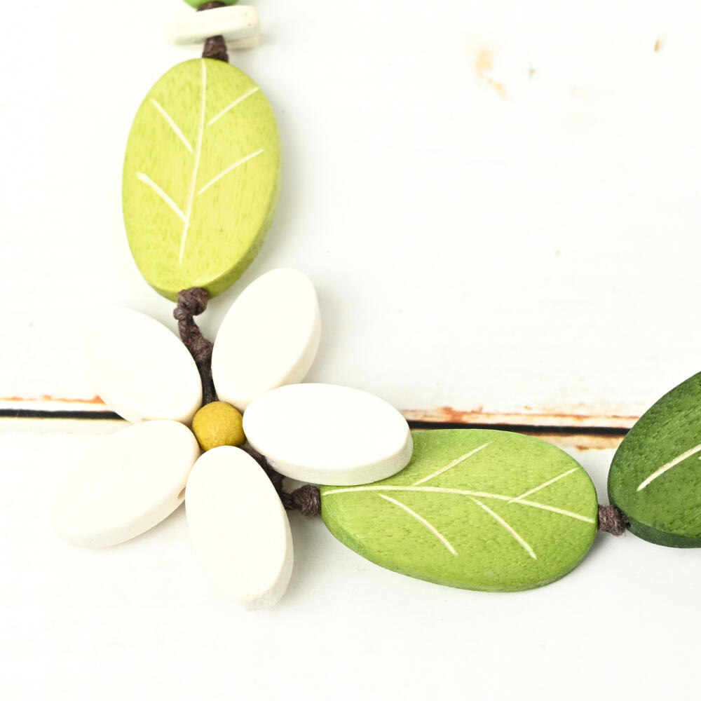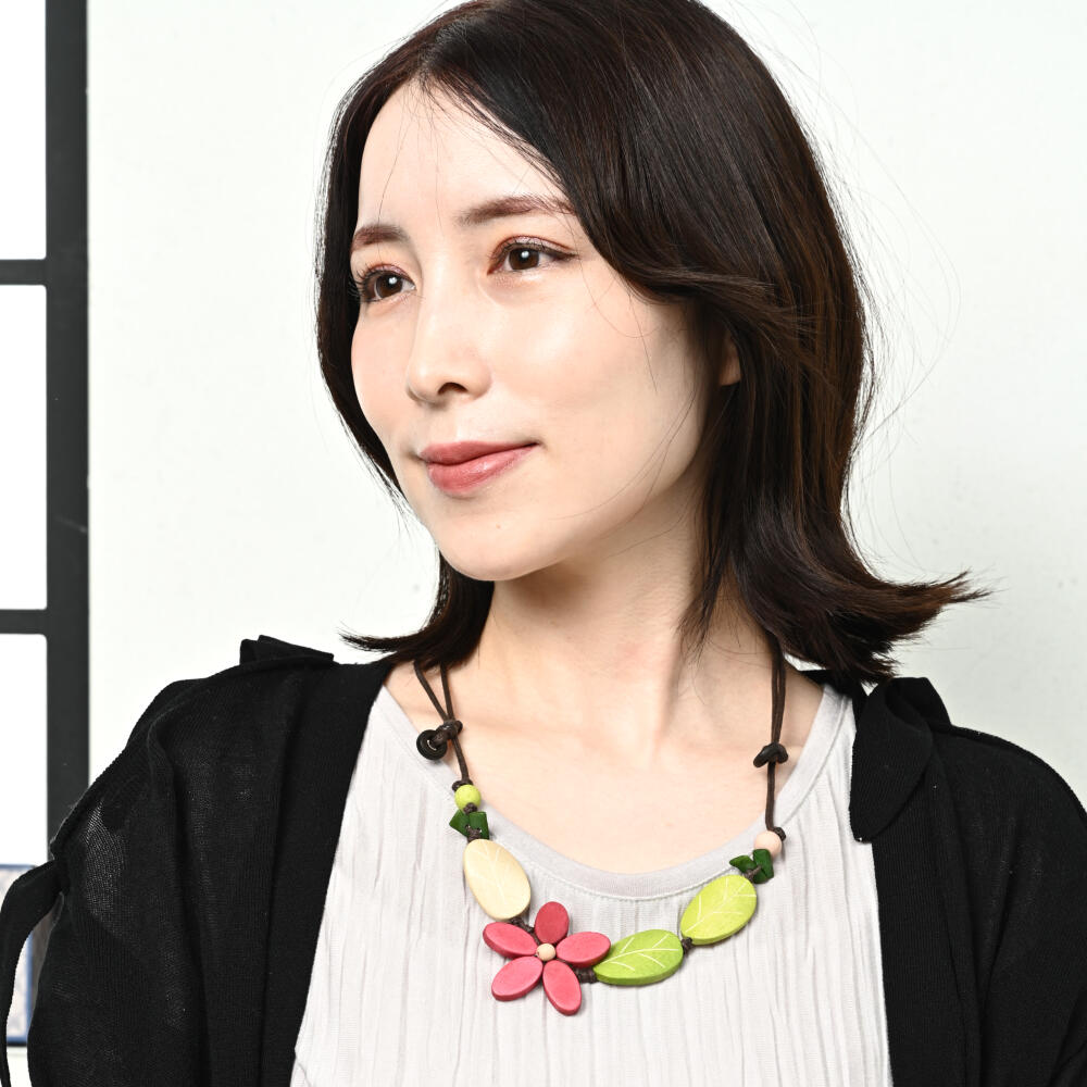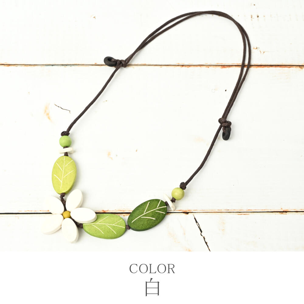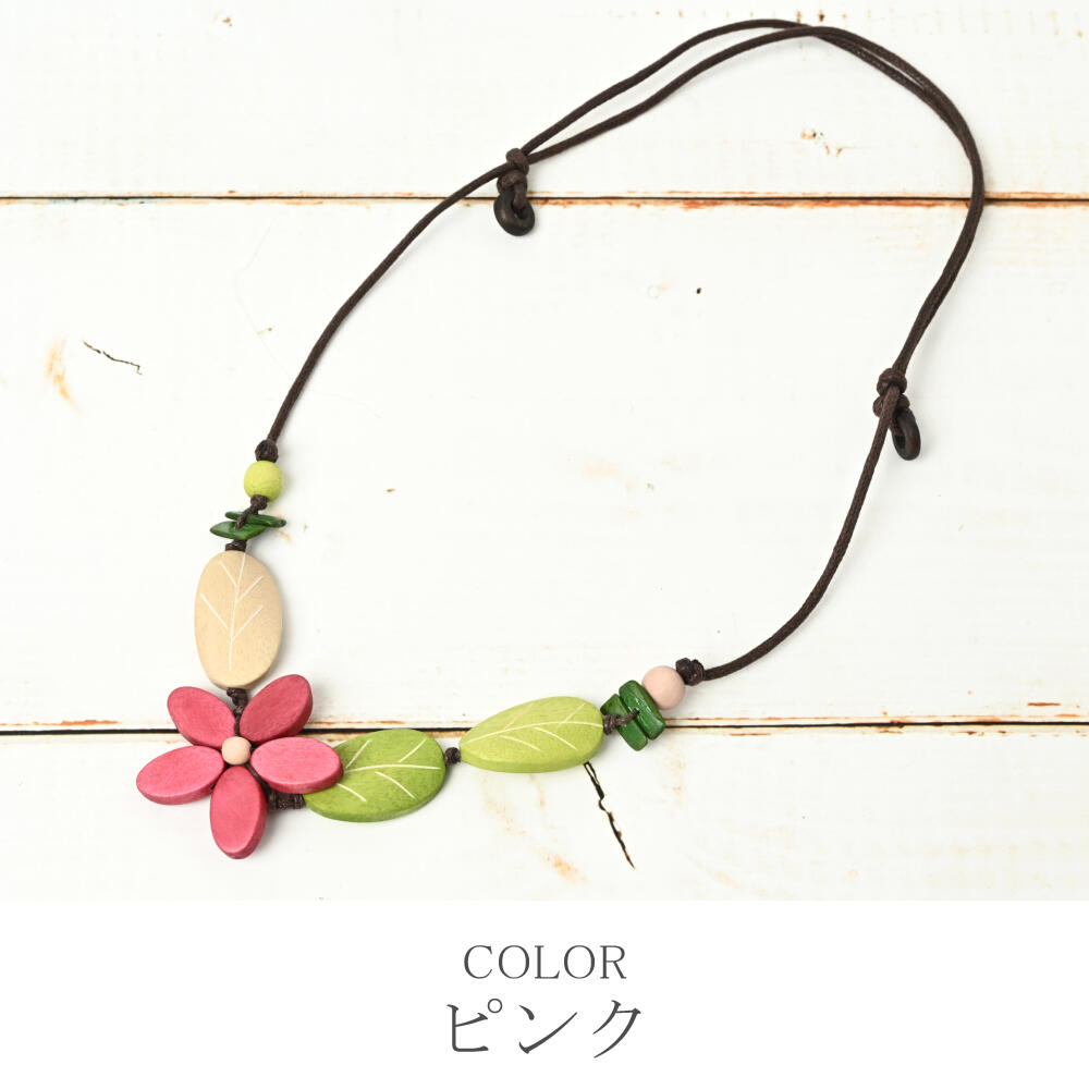 ネックレス レディース 花 フラワー 白 ピンク 葉っぱ ウッド 天然素材 お洒落 可愛い N
