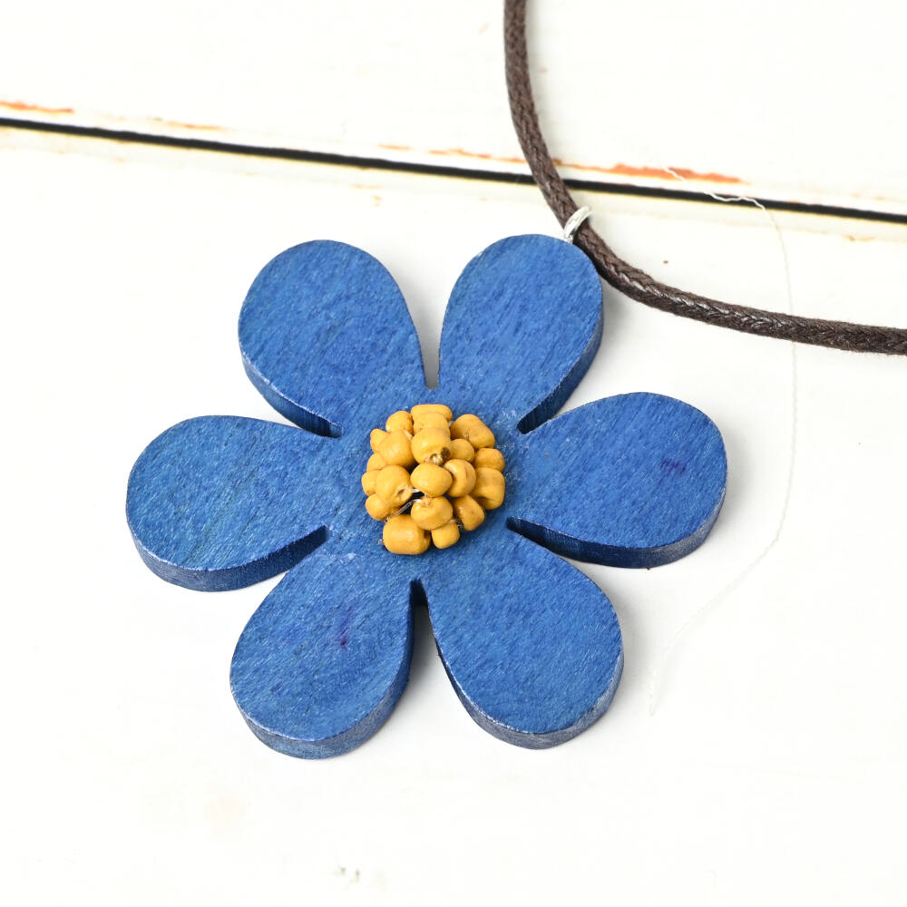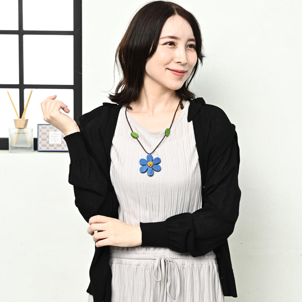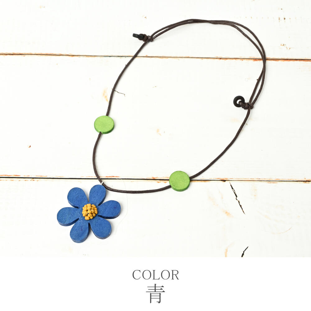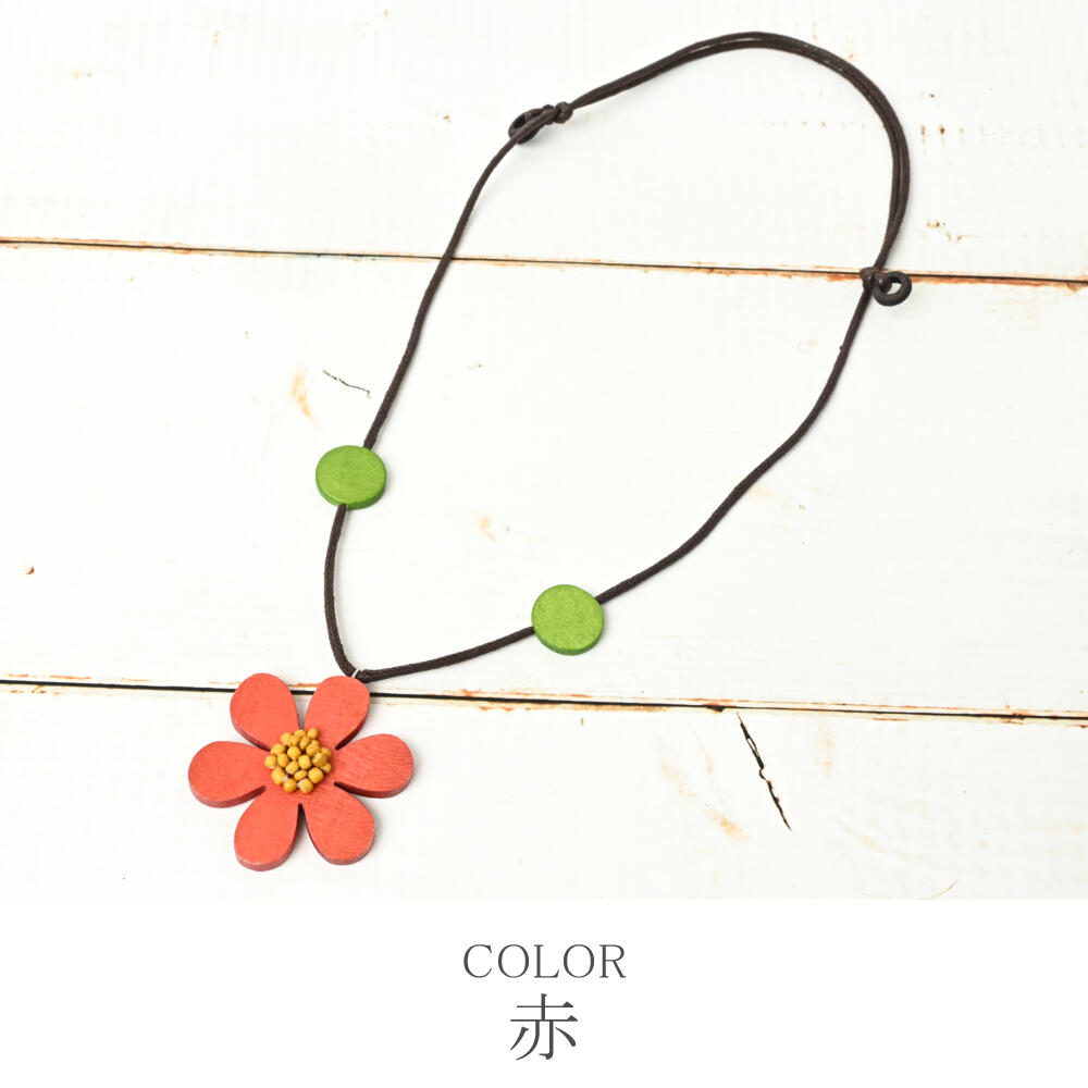 ネックレス ペンダント レディース 花 フラワー 赤 青 ウッド 天然素材 お洒落 可愛い N