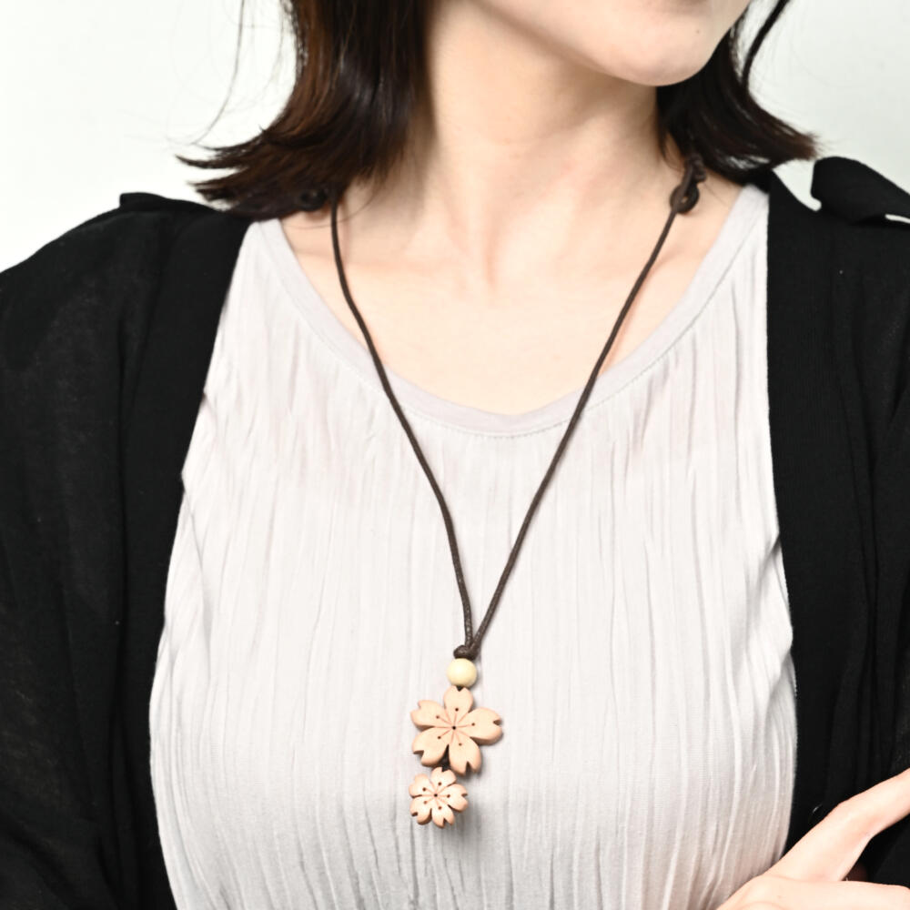 ネックレス レディース 桜 さくら 花 フラワー ピンク ウッド 天然素材 ちいさめ 可愛い N