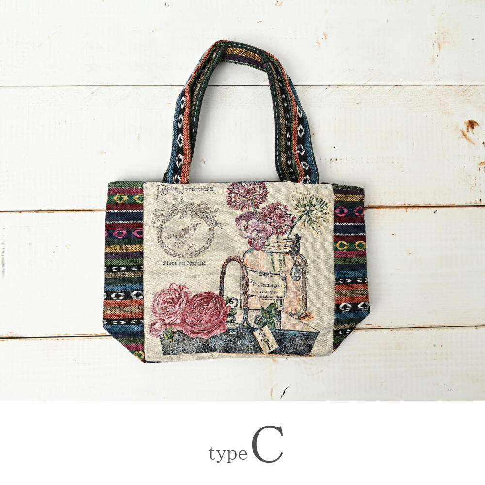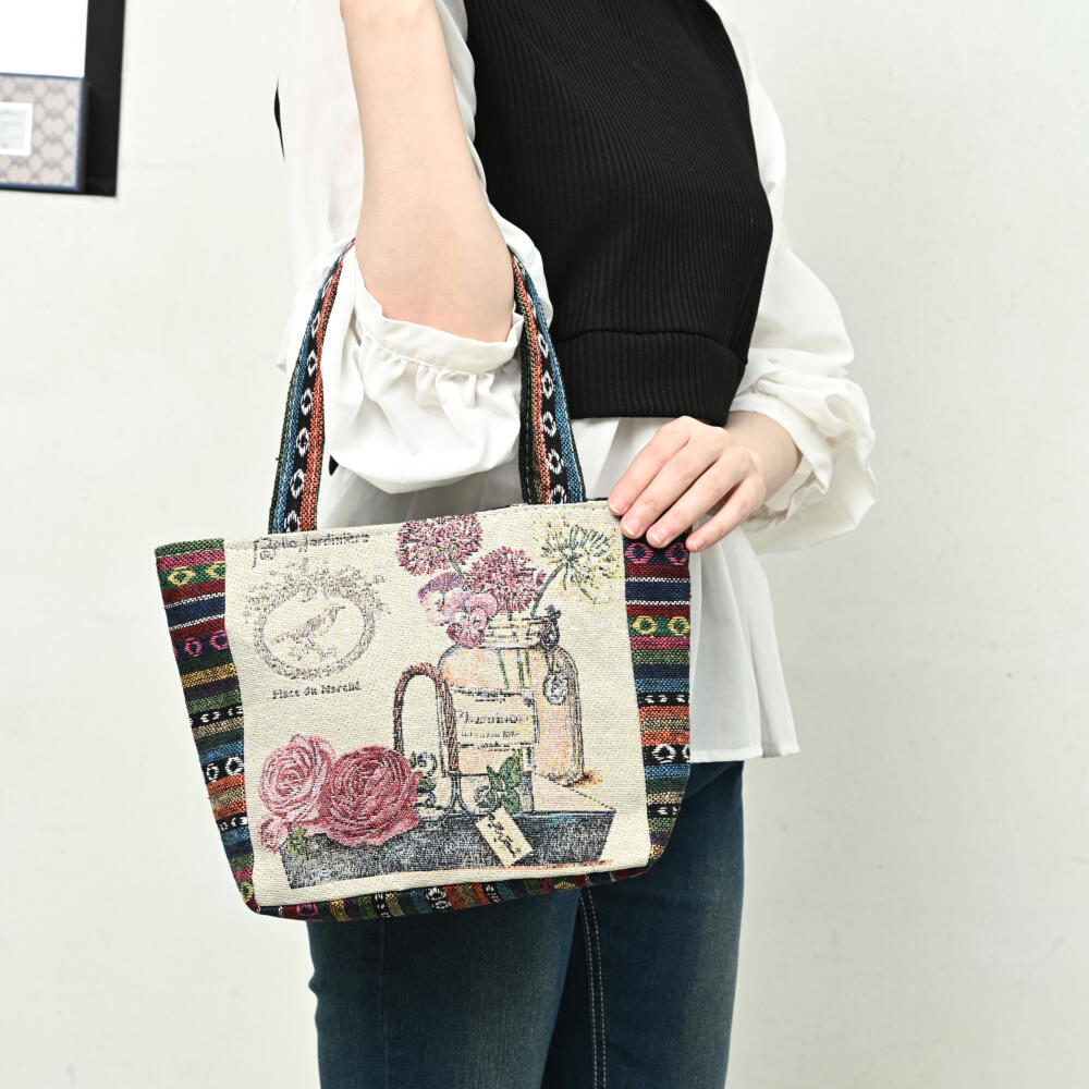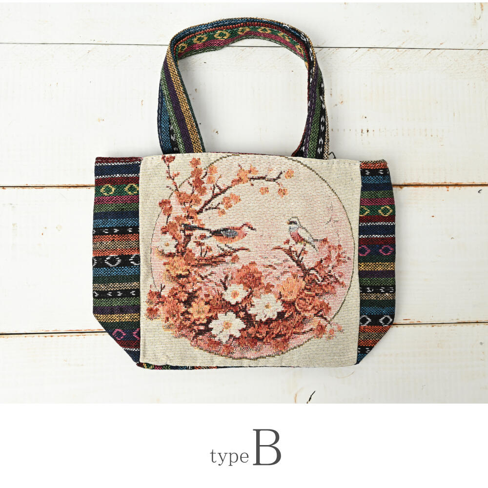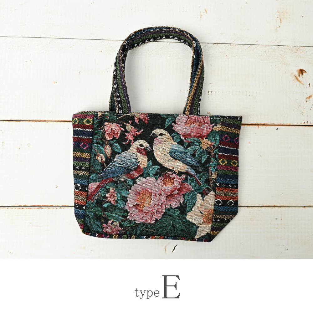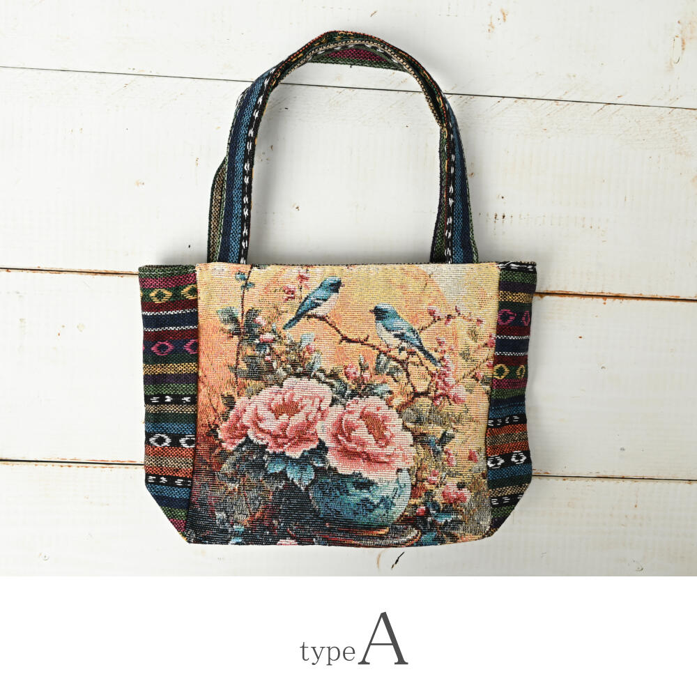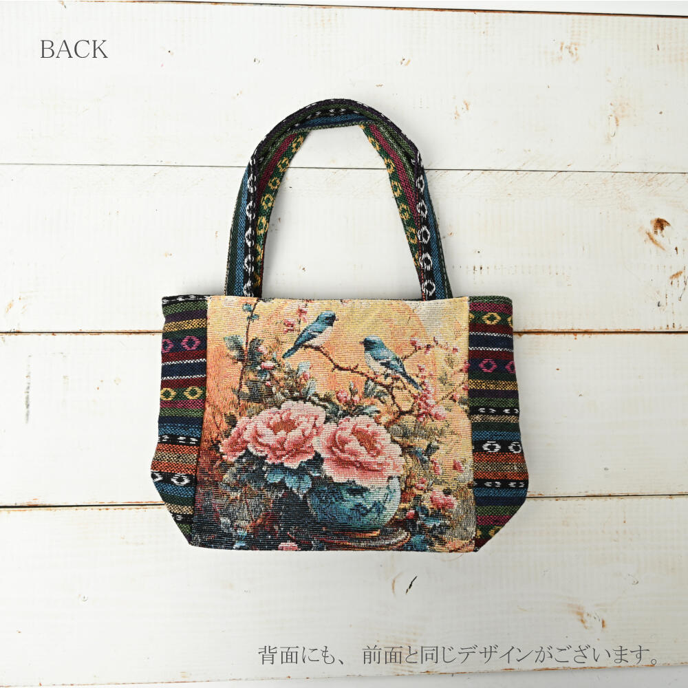 トートバッグ 小鳥 蝶々 香水 花 ゴブラン織り バッグ 鞄 かばん 敬老の日 プレゼント Z
