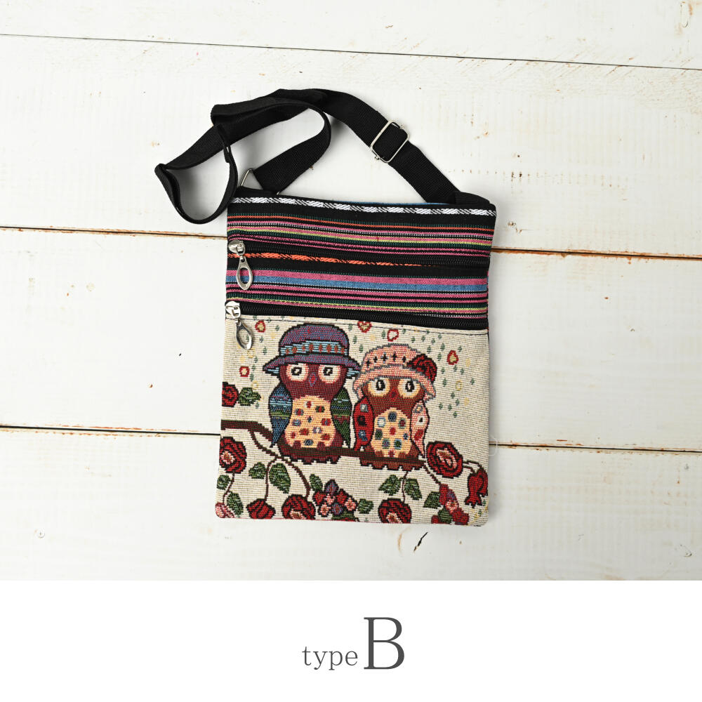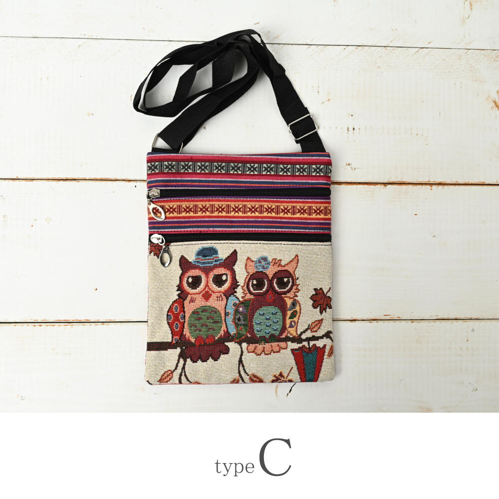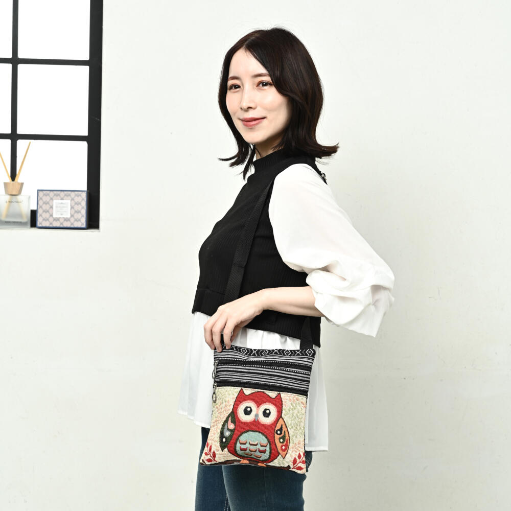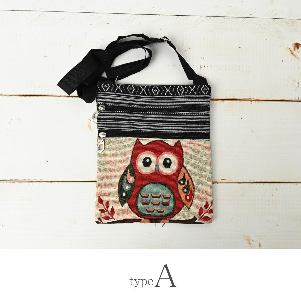ポシェット ショルダーバッグ フクロウ ふくろう 梟 ゴブラン織り 敬老の日 プレゼント Z