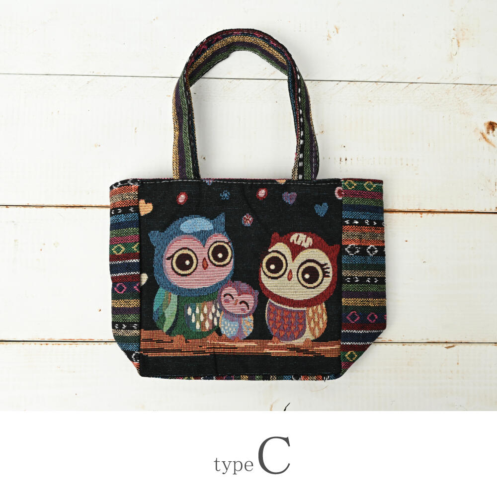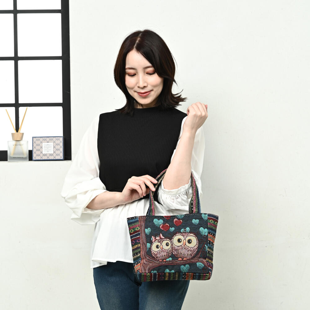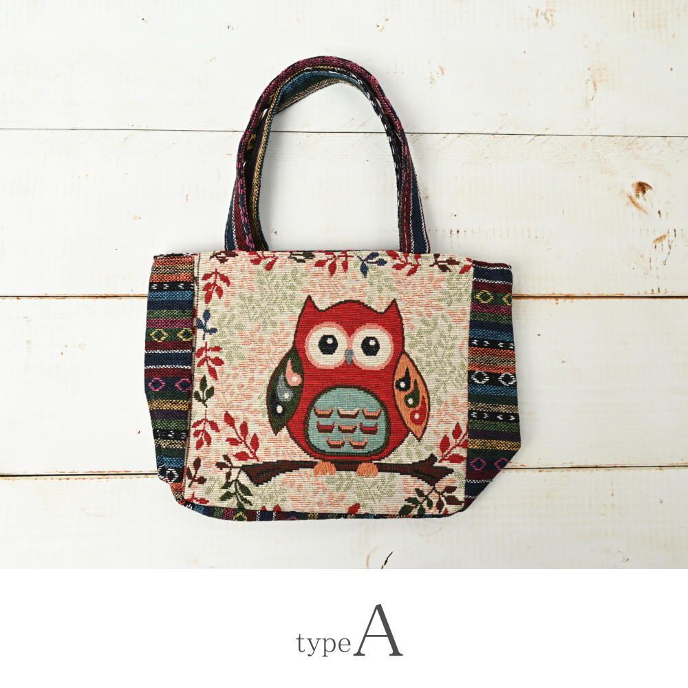 トートバッグ フクロウ ふくろう 梟 ゴブラン織り バッグ 鞄 かばん 敬老の日 プレゼント Z