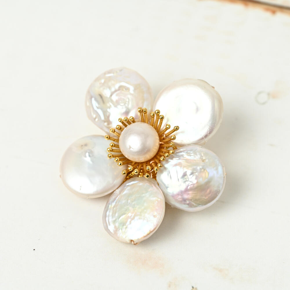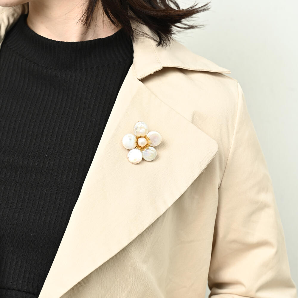 ブローチ レディース 淡水パール 花 フラワー 高級感 高見え セレモニー可愛い プレゼント BR