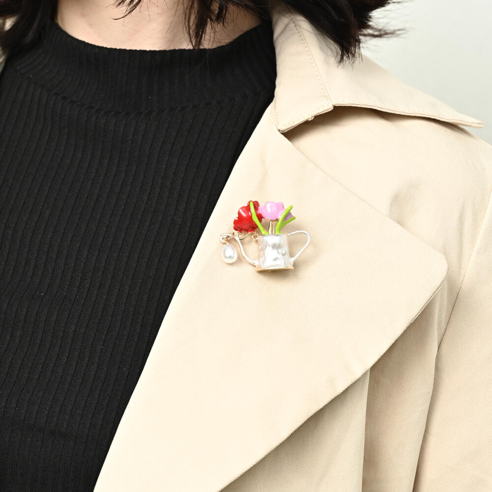 ブローチ レディース チューリップ 花 フラワー 春 ピンク 赤 パール 可愛い プレゼント BR