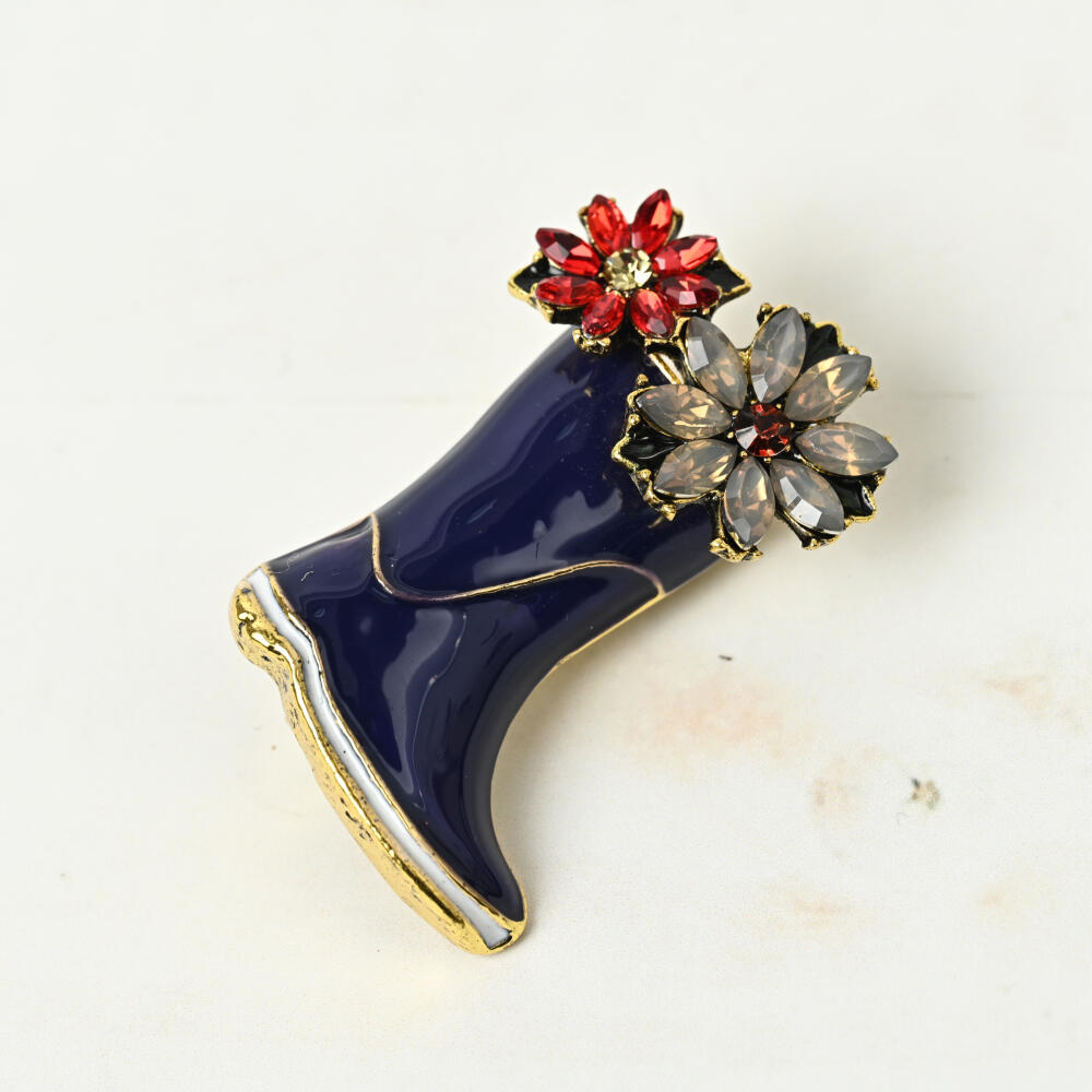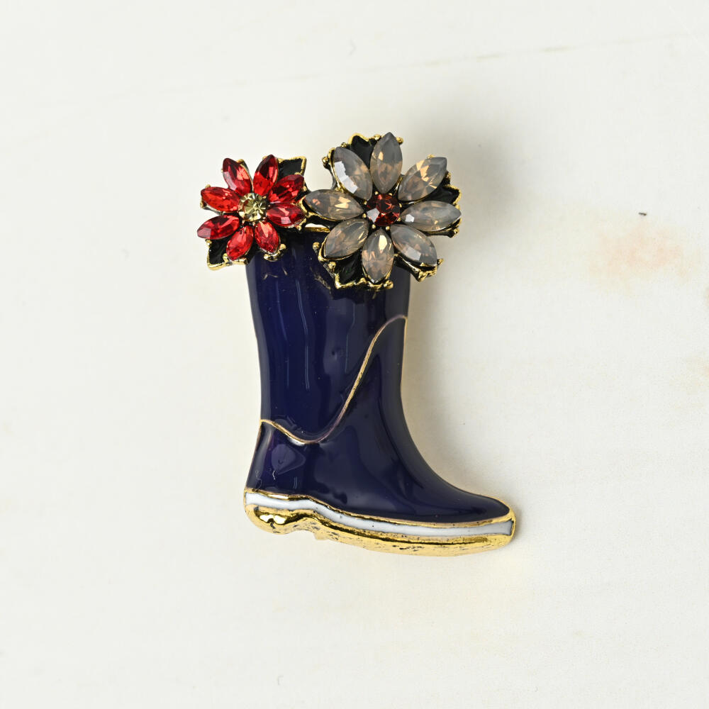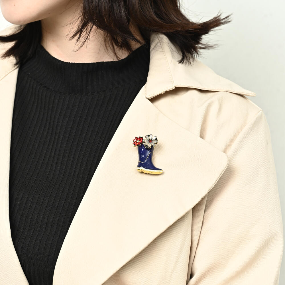 ブローチ レディース 花 フラワー キラキラ 長靴 レインブーツ 春 赤 可愛い プレゼント BR