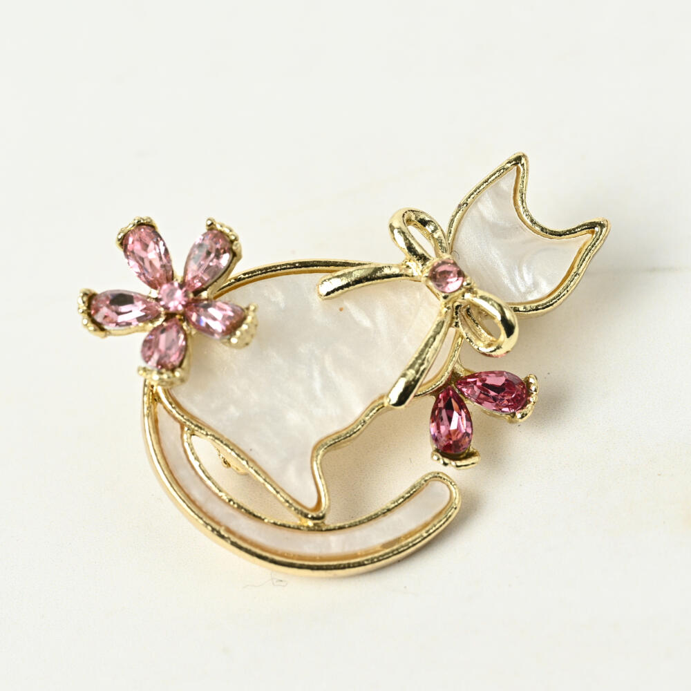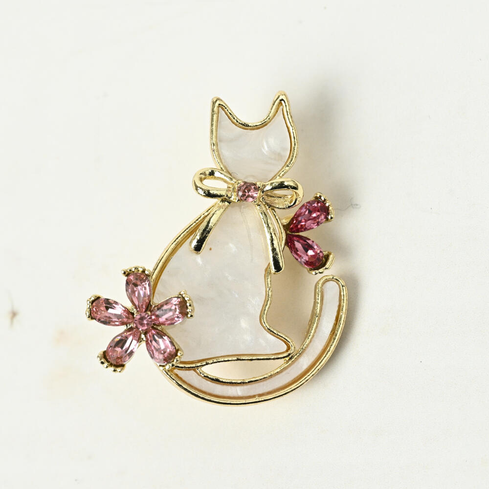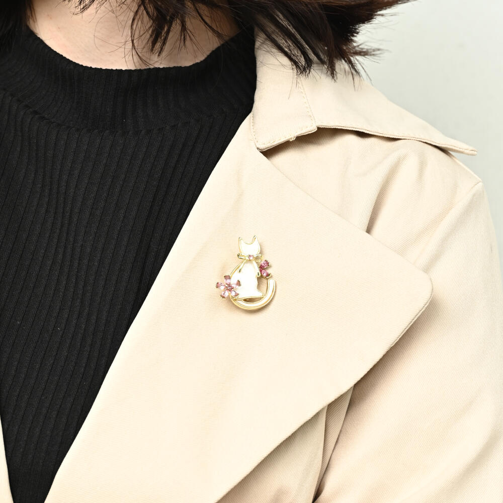 ブローチ レディース 猫 ネコ ねこ 桜 さくら ピンク 春 ビジュ キラキラ 可愛い プレゼント BR