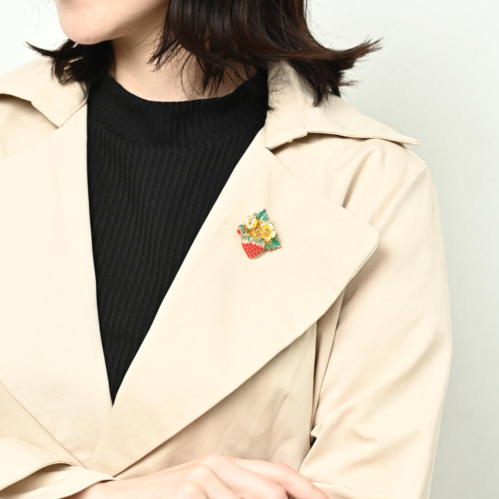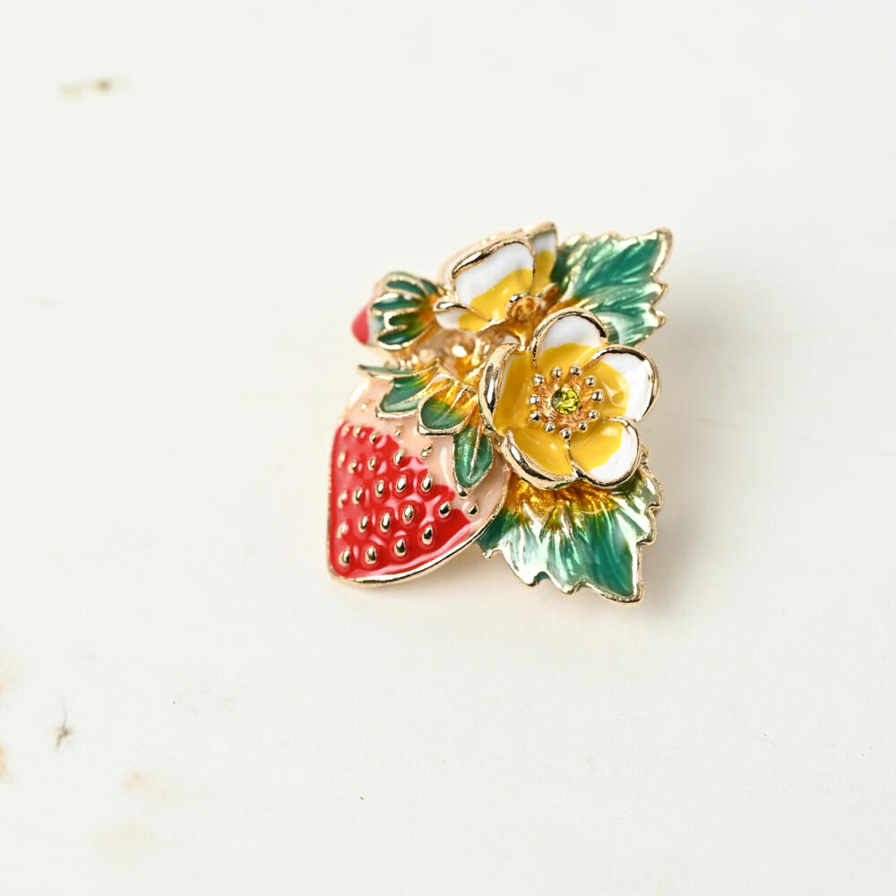 ブローチ レディース いちご イチゴ 苺 ストロベリー 花 フラワー 赤 春 可愛い プレゼント BR