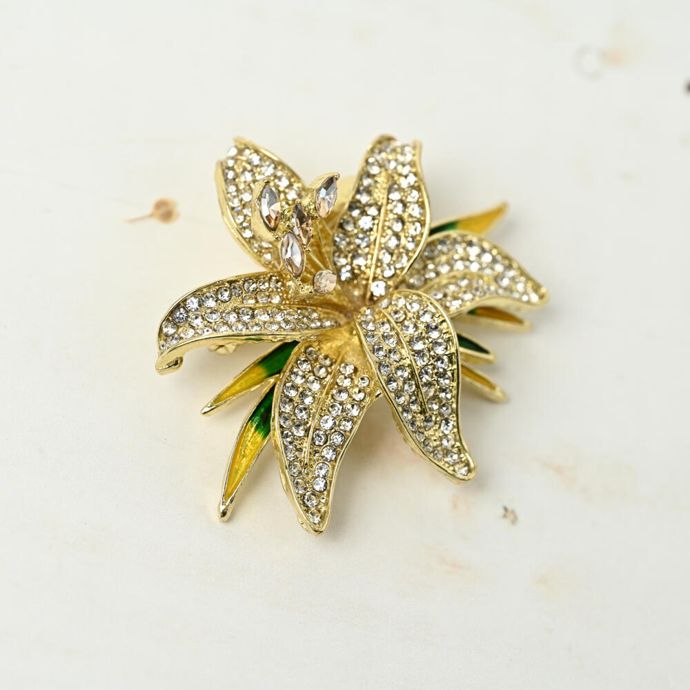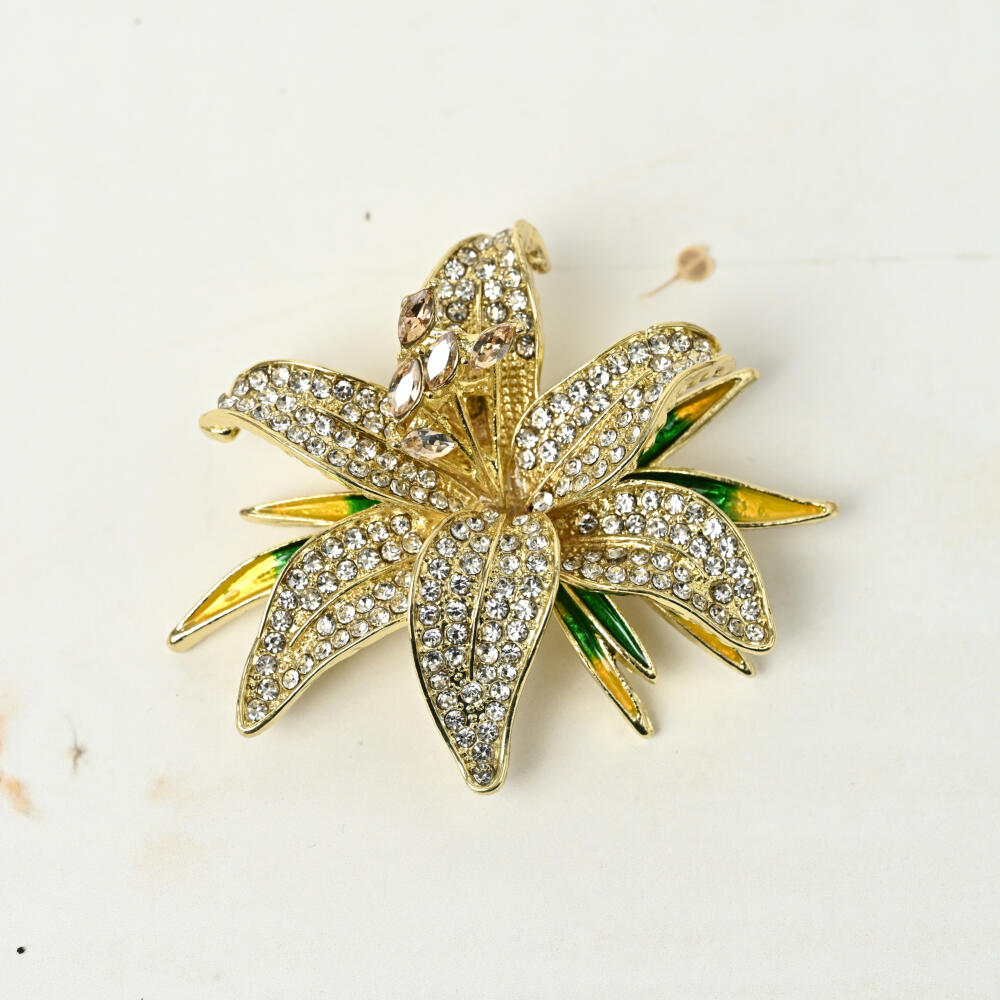 ブローチ レディース 百合 ゆり 花 フラワー 初夏 ラインストーン キラキラ 高級感 プレゼント BR