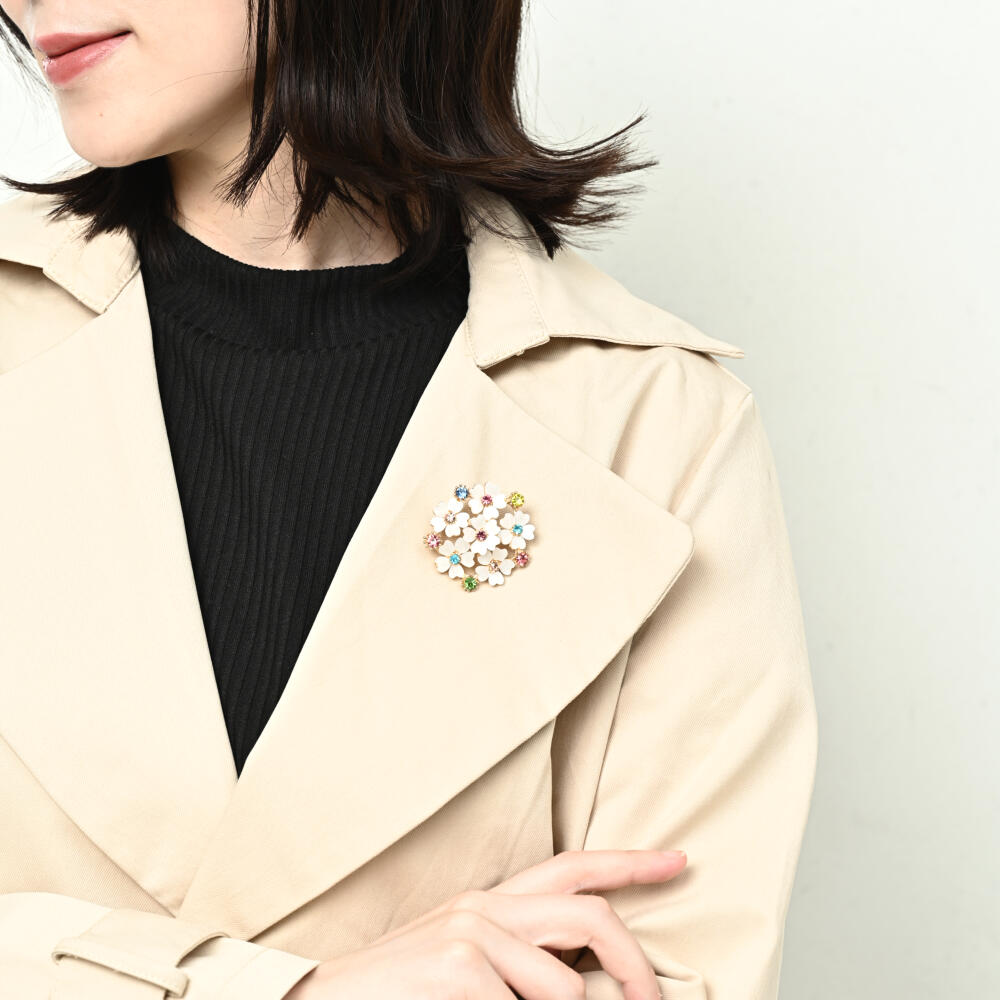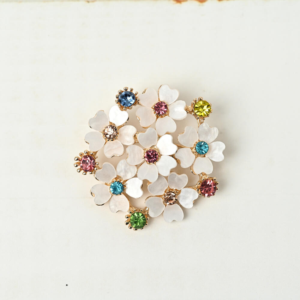 ブローチ レディース 花 フラワー 白 マルチカラー カラフル キラキラ 春 可愛い プレゼント BR