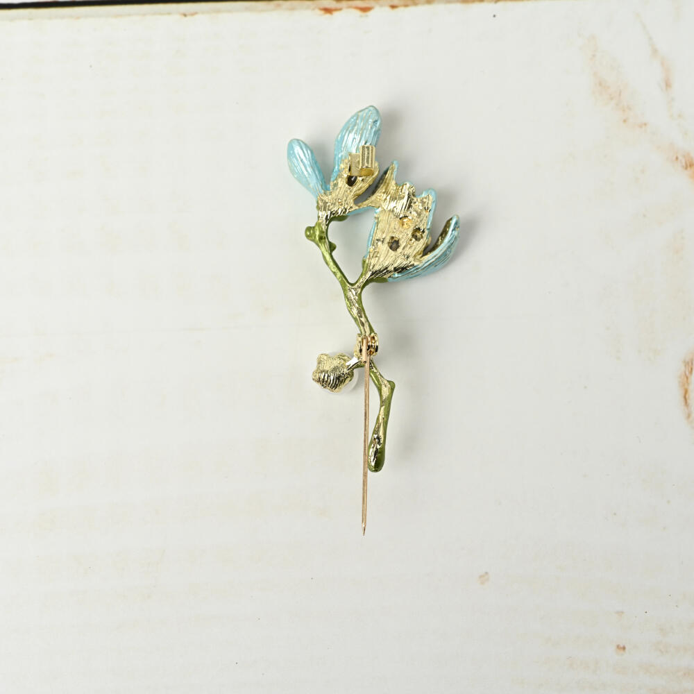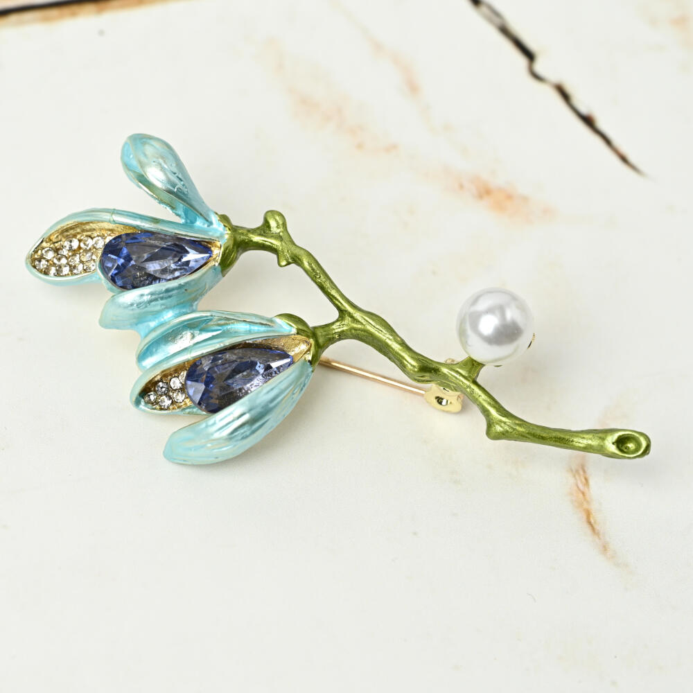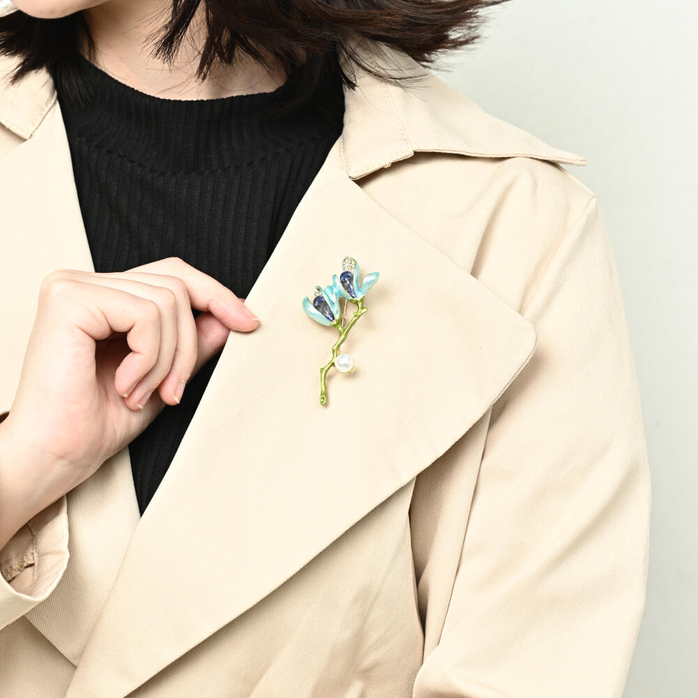 ブローチ レディース 花 フラワー 青 ビジュ ラインストーン キラキラ パール プレゼント BR