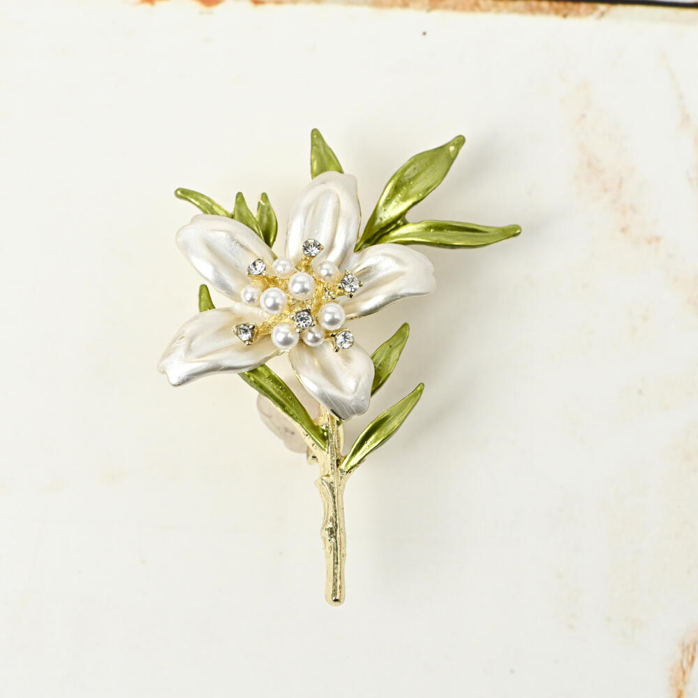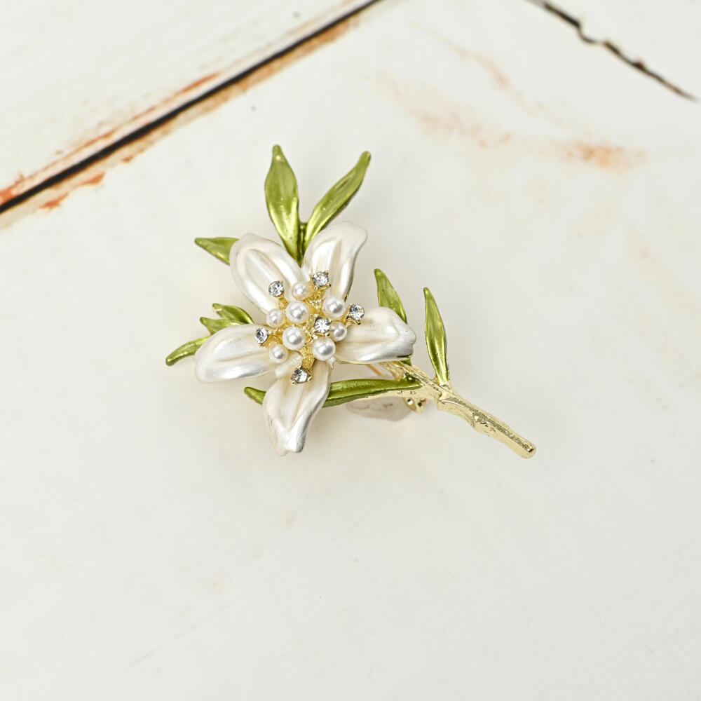 ブローチ レディース 百合 ゆり 花 フラワー 初夏 パール ラインストーン キラキラ プレゼント BR