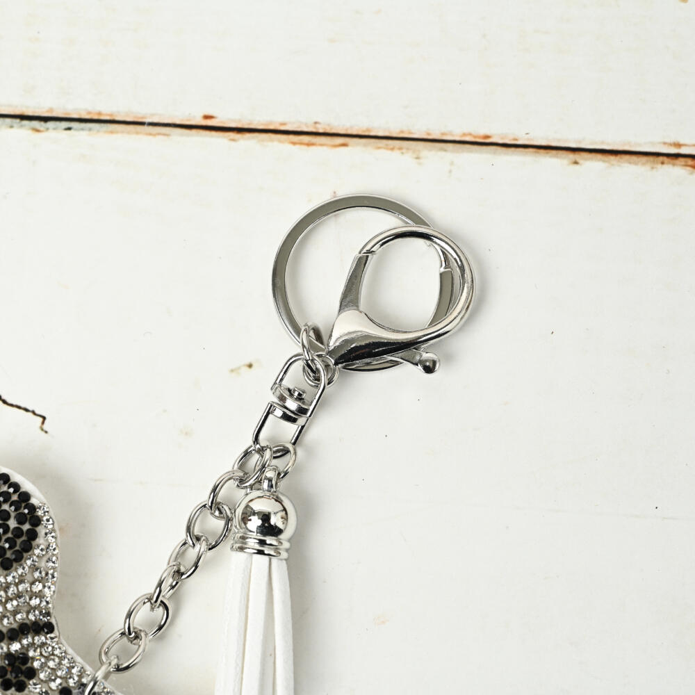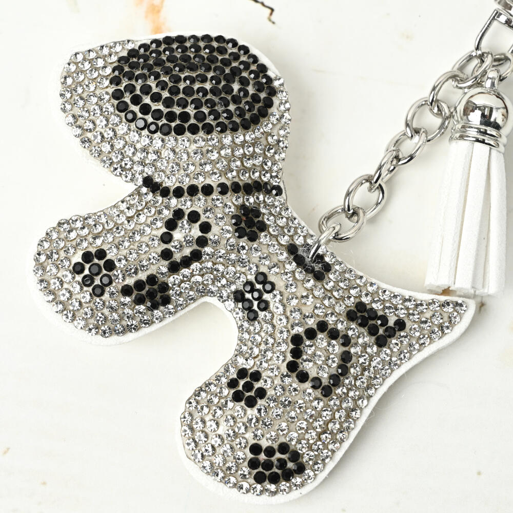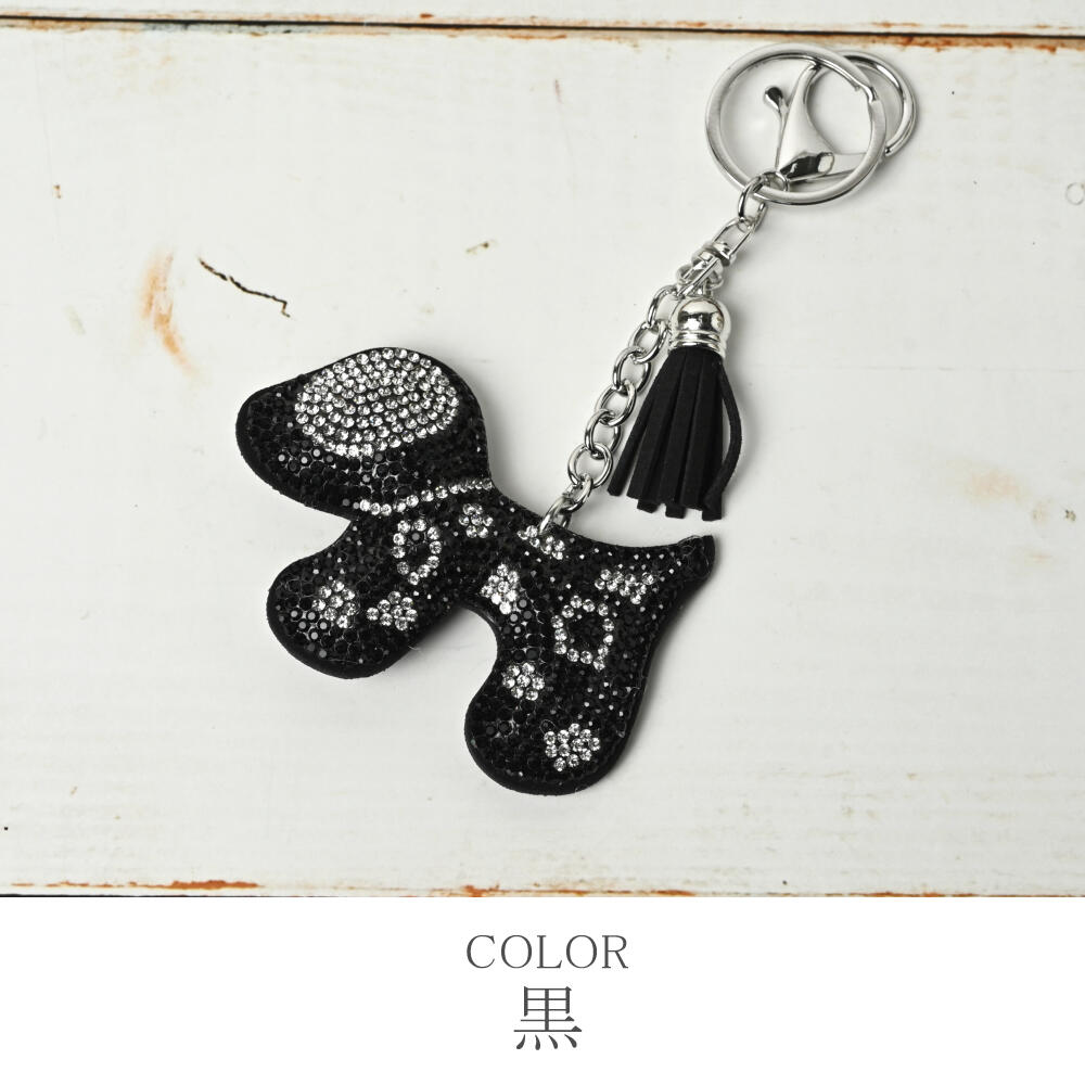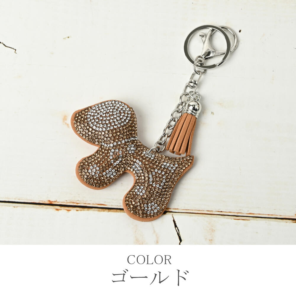 キーホルダー バッグチャーム 犬 イヌ ブチ 可愛い キラキラ 白 黒 ゴールド 小さめ KH
