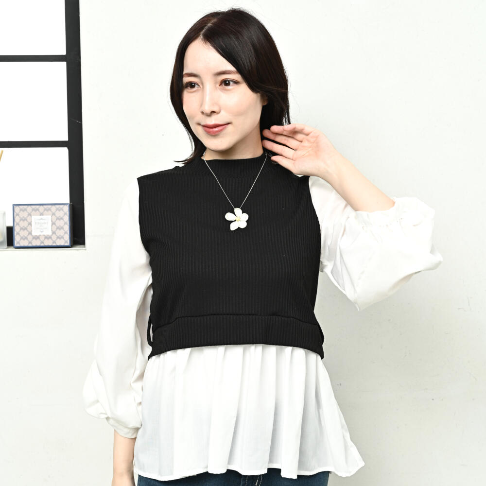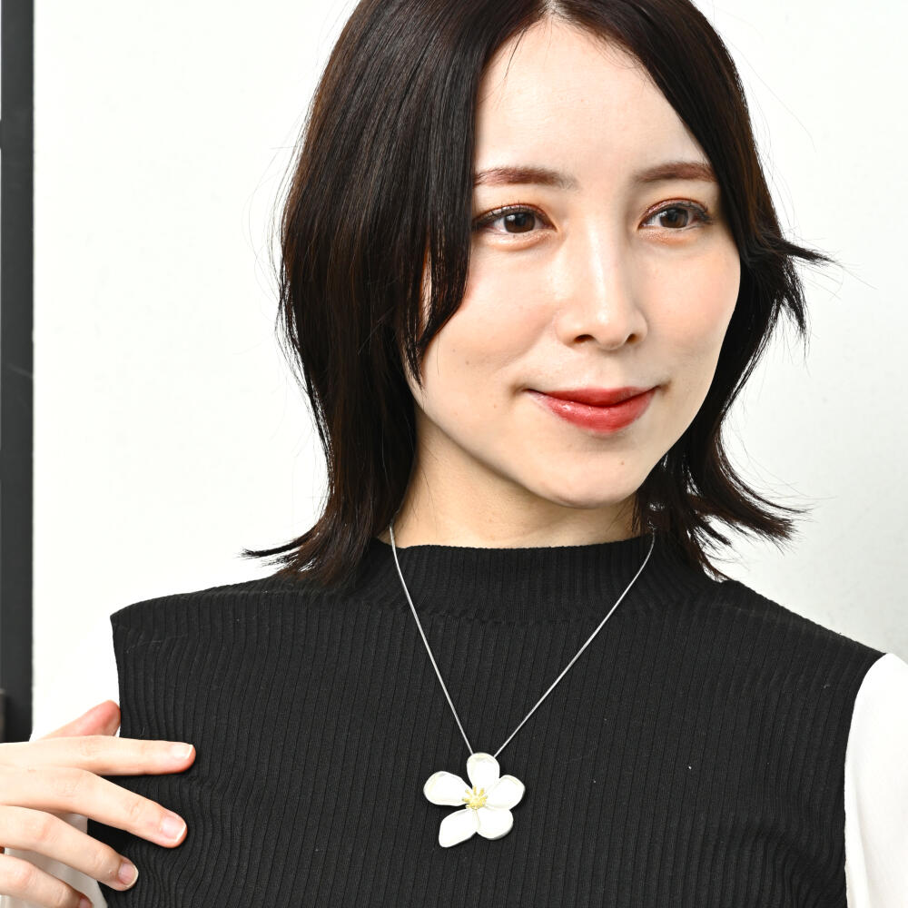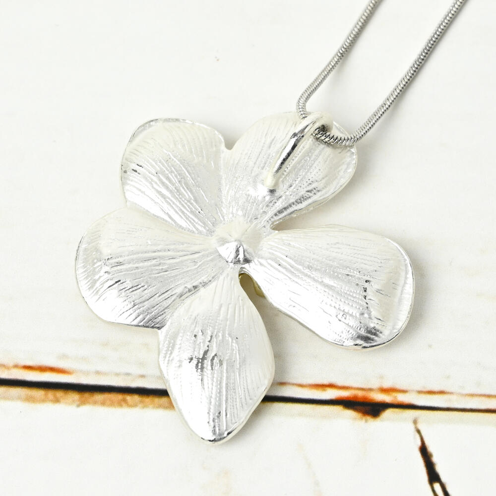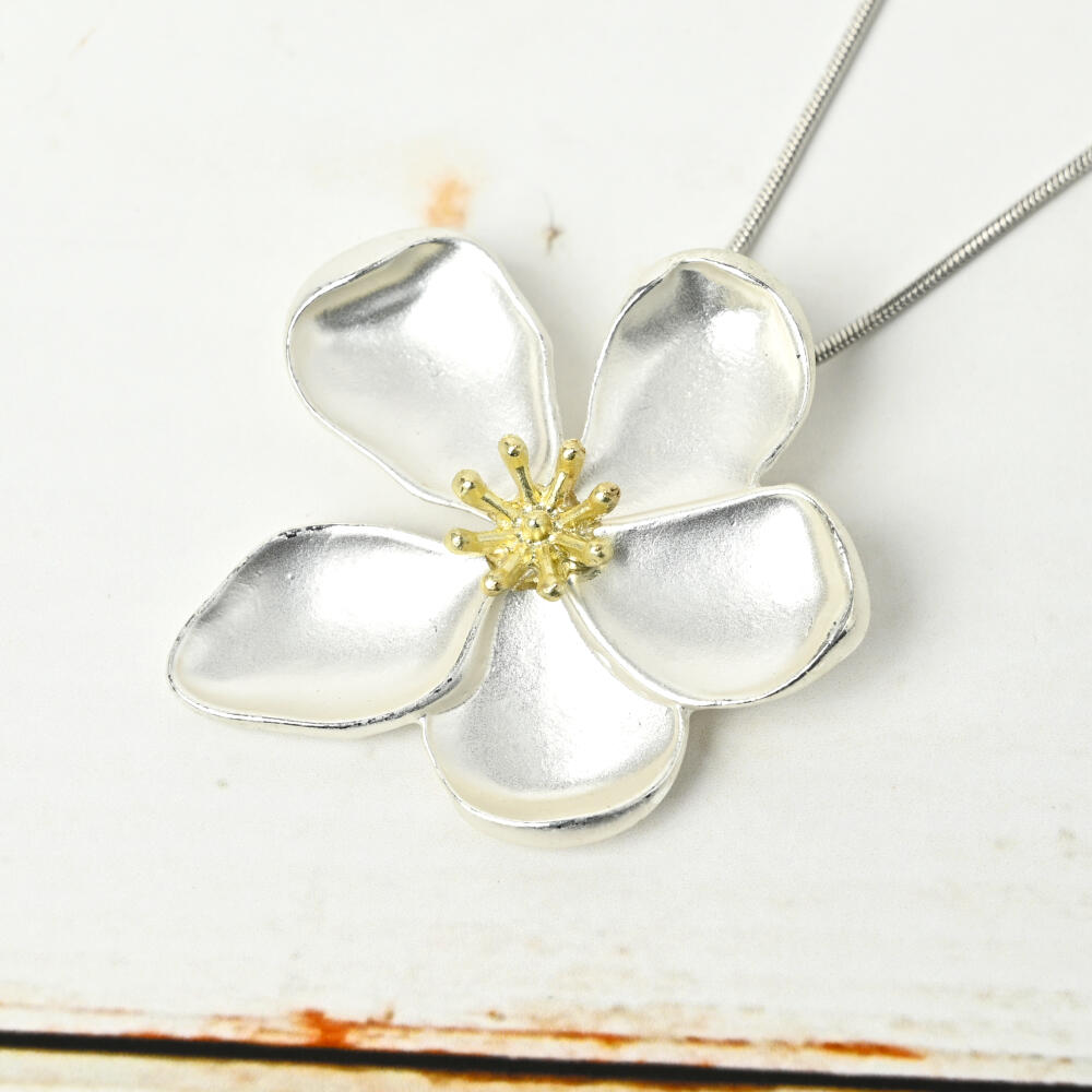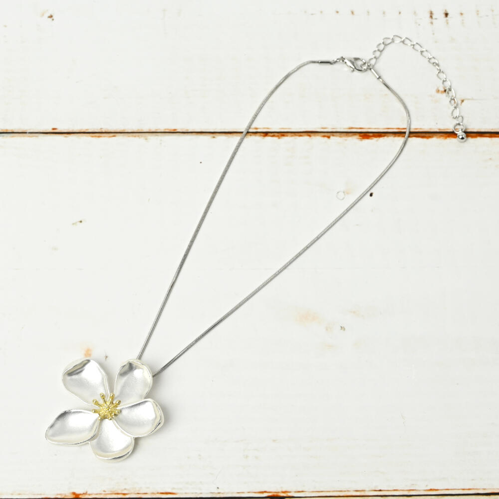 ネックレス ペンダント レディース 花 フラワー メタル シルバー 艶消し 短め N