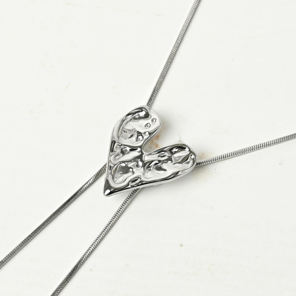 ネックレス スライダー レディース ハート 表面加工 メタル シルバー カジュアル プレゼント N