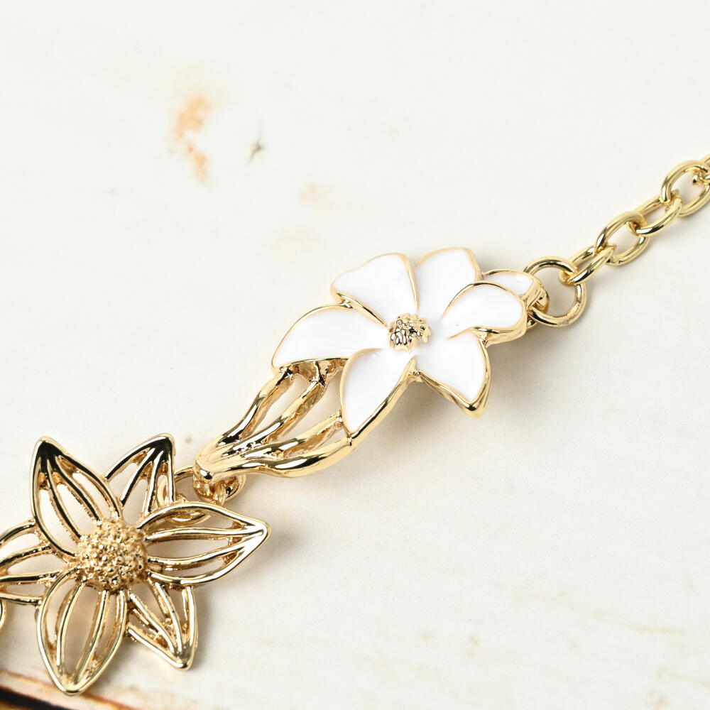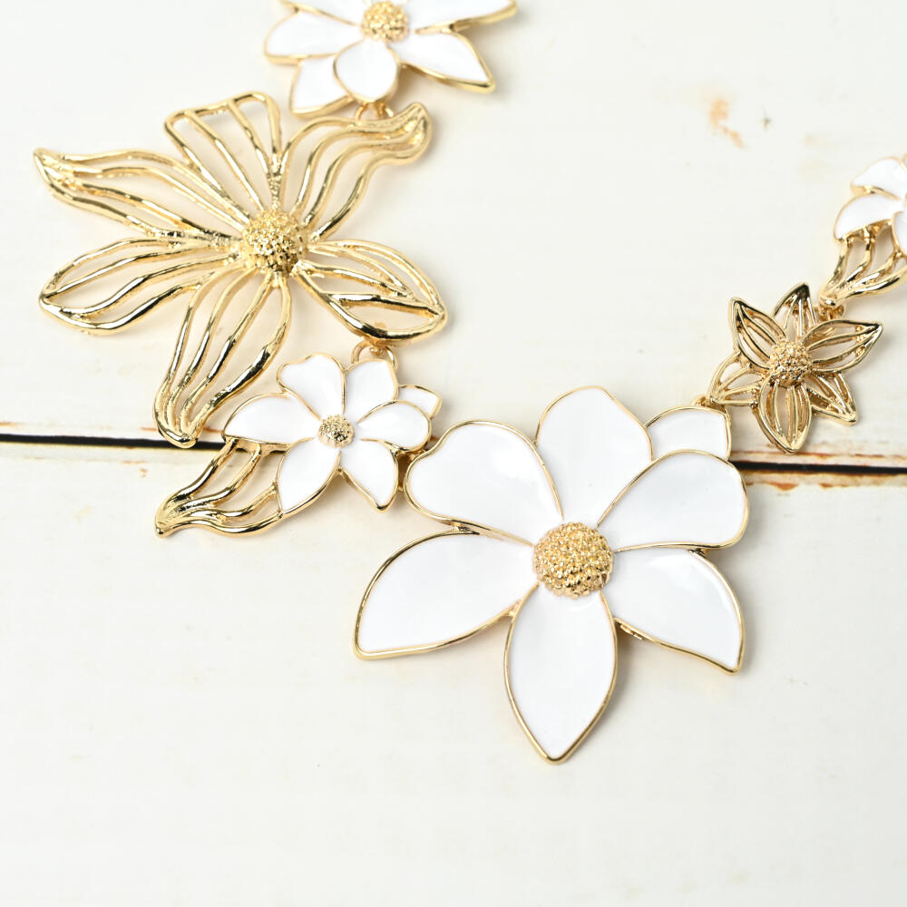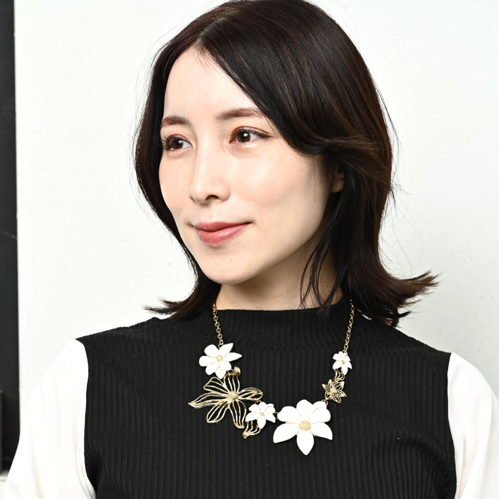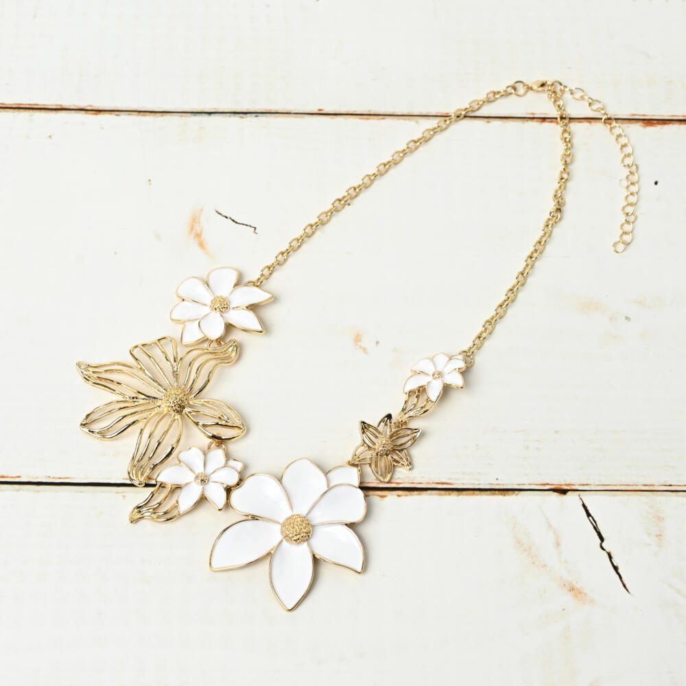 ネックレス レディース 花 フラワー 白 ゴールド メタル 大きめ お洒落 カジュアル プレゼント N