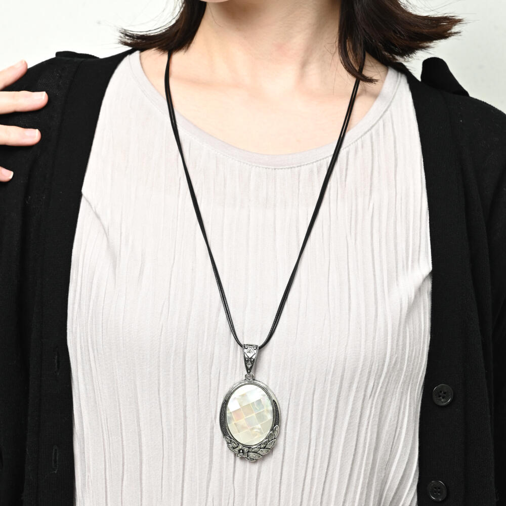 日本製 ネックレス ペンダント レディース マザーオブパール シェル オーバル 高級感 高見え N