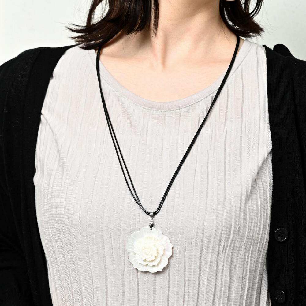 日本製 ネックレス ペンダント レディース マザーオブパール シェル 花 バラ 薔薇 葉っぱ 高級感 N