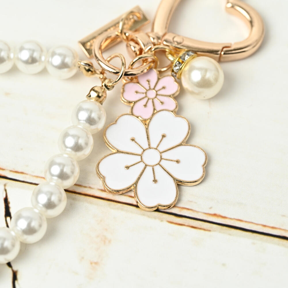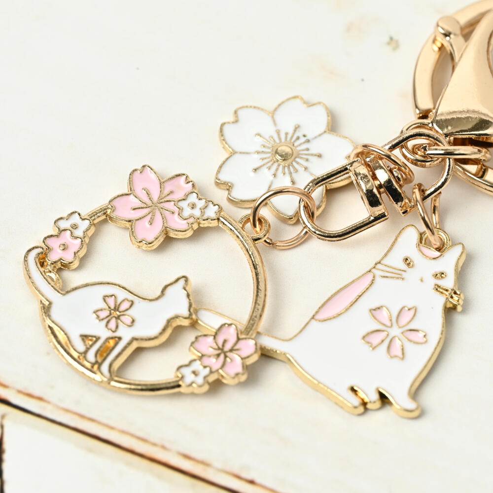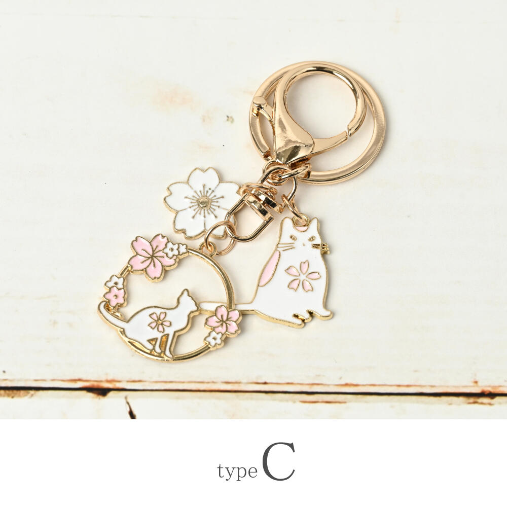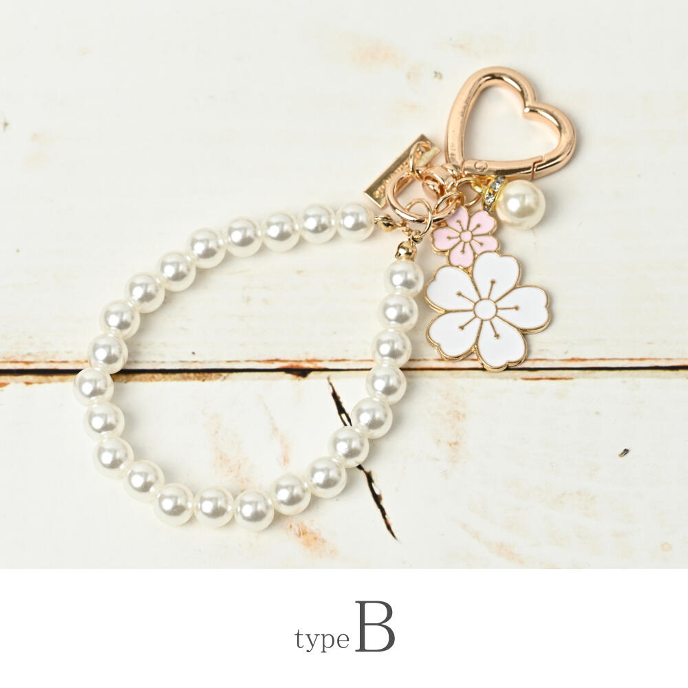 キーホルダー バッグチャーム 桜 さくら サクラ 花 猫 ネコ ねこ うさぎ ウサギ パール KH