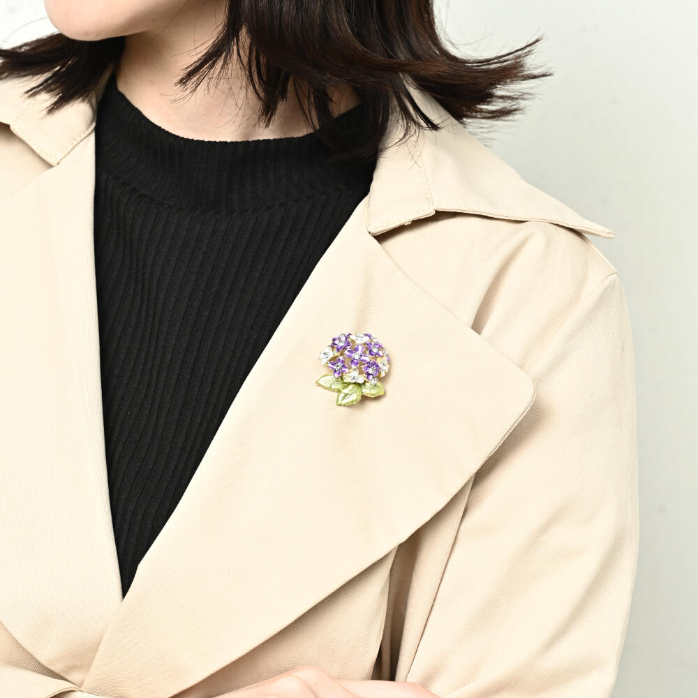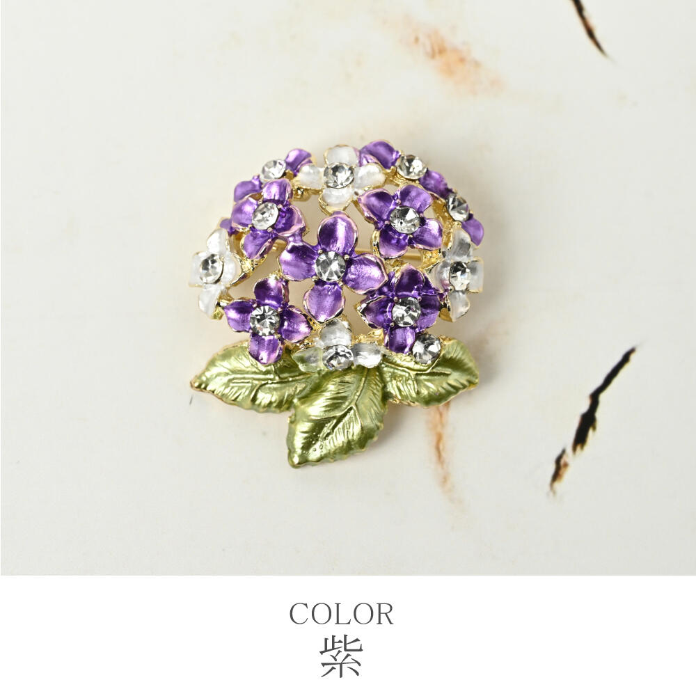 ブローチ レディース 紫陽花 あじさい アジサイ 花 フラワー 青 紫 梅雨 夏 プレゼント 小さめ B