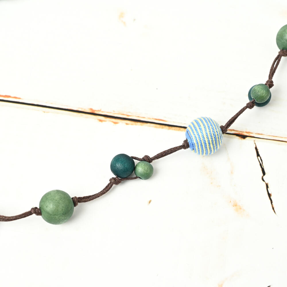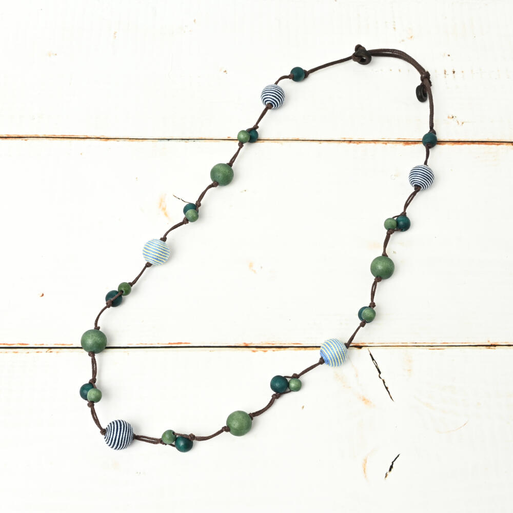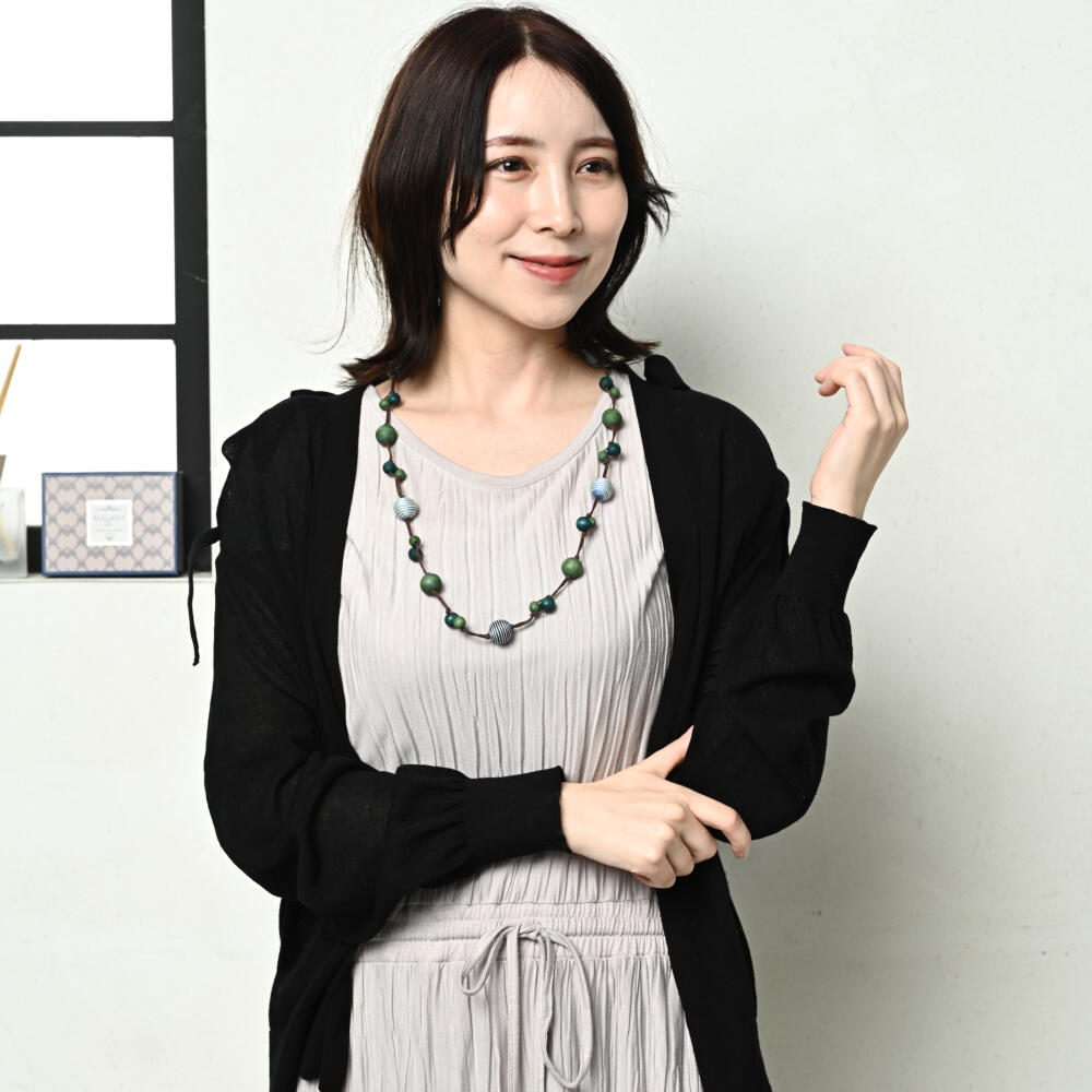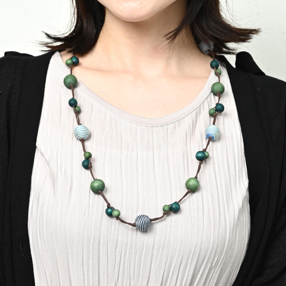 ネックレス レディース ウッド ボーダー 縞模様 緑 マリン 夏 天然素材 カジュアル N