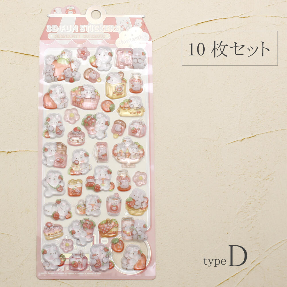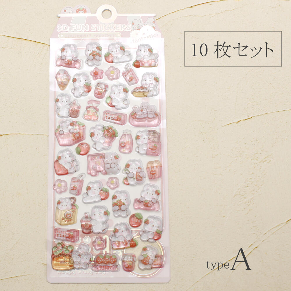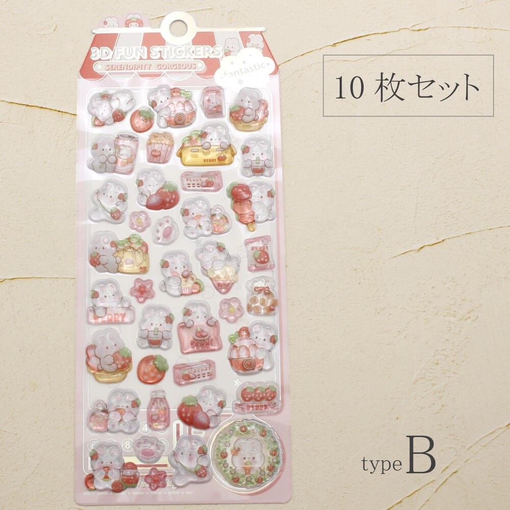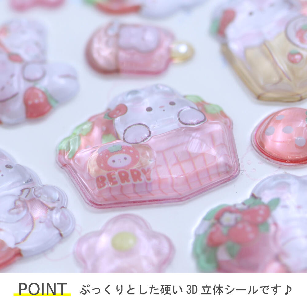 シール ステッカー ぷっくり 立体 3D かたい 硬い 可愛い 動物 うさぎ ウサギ いちご イチゴ 苺 Z