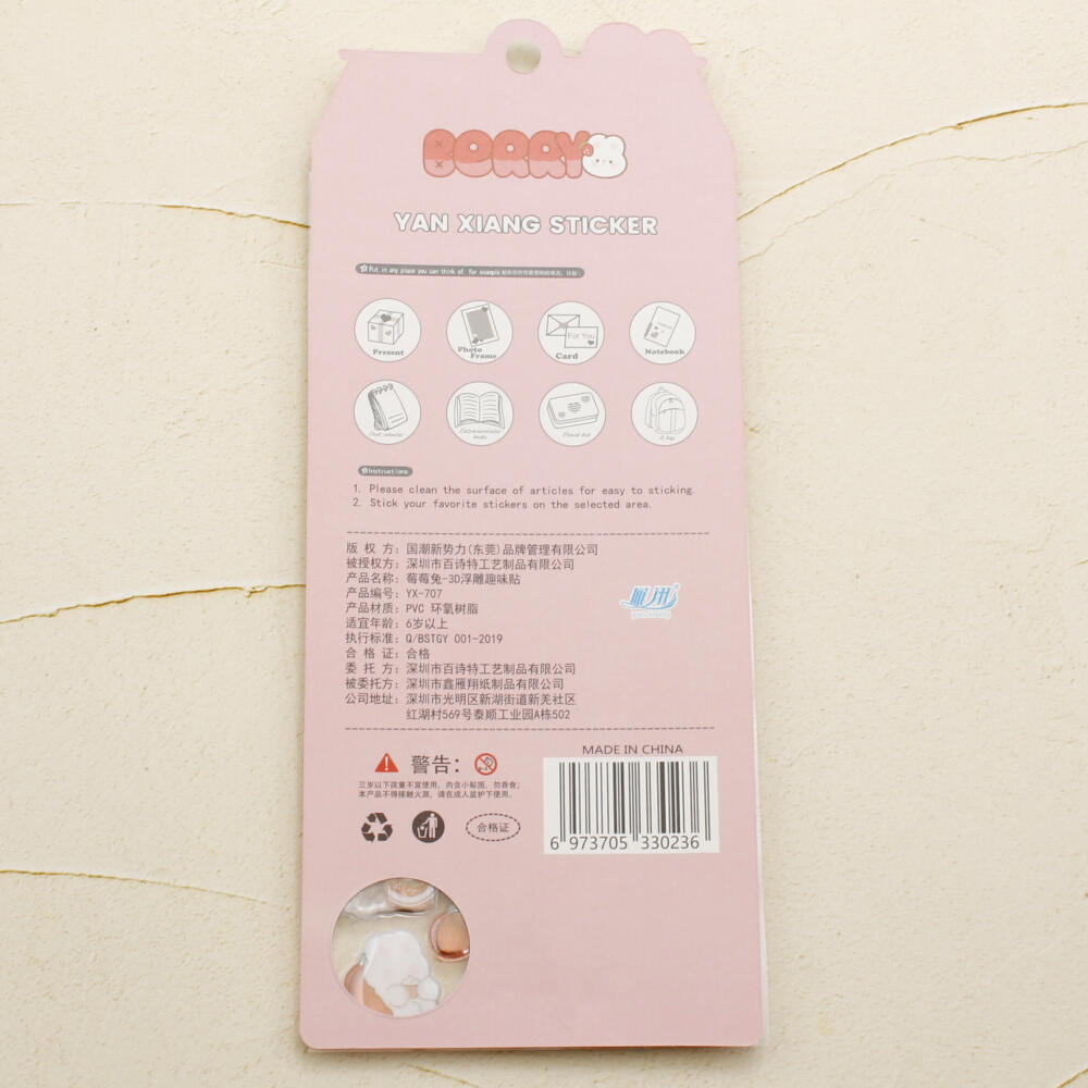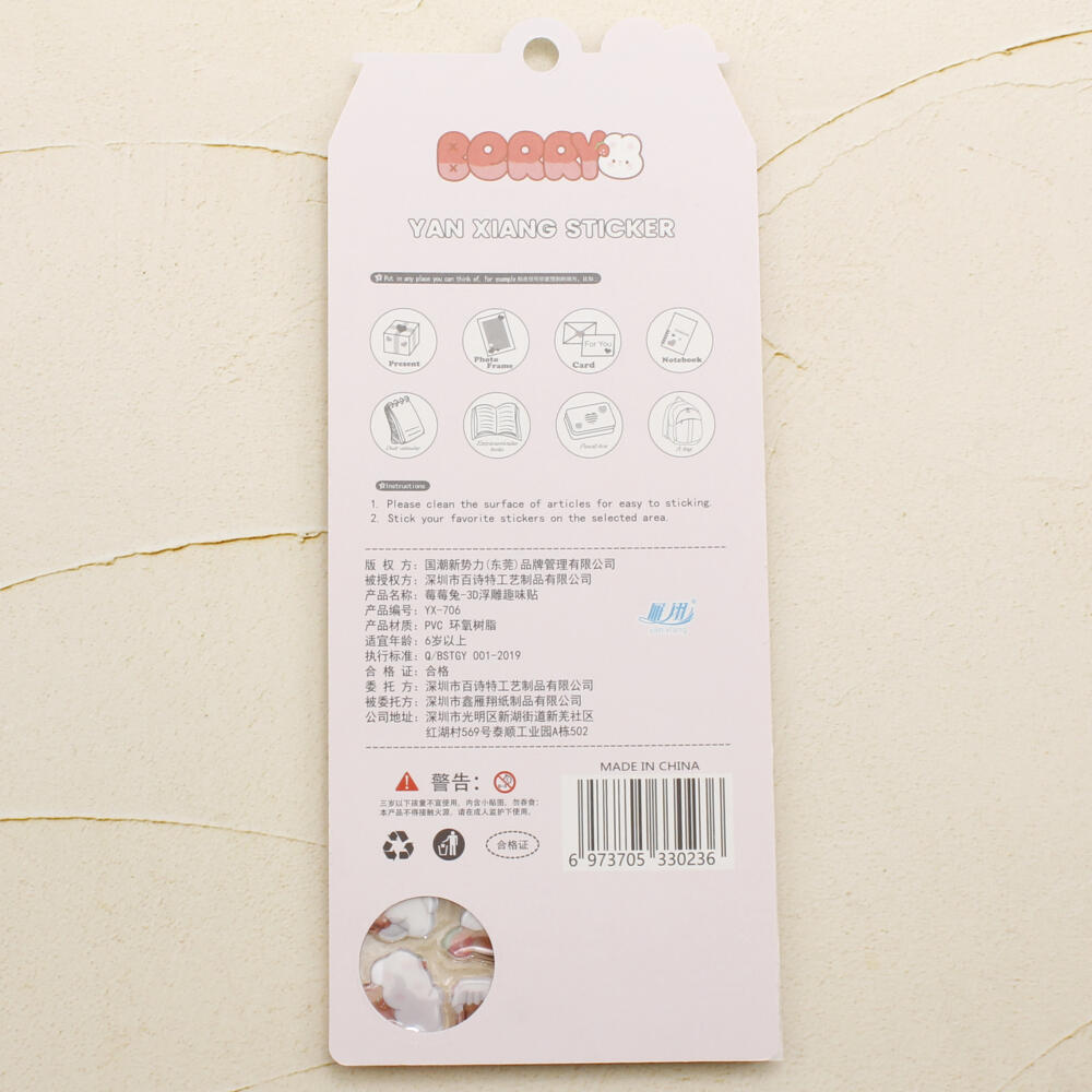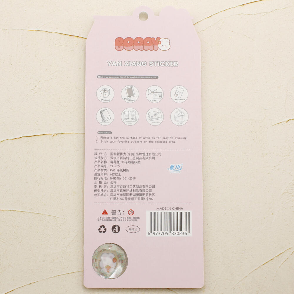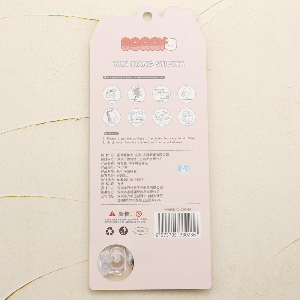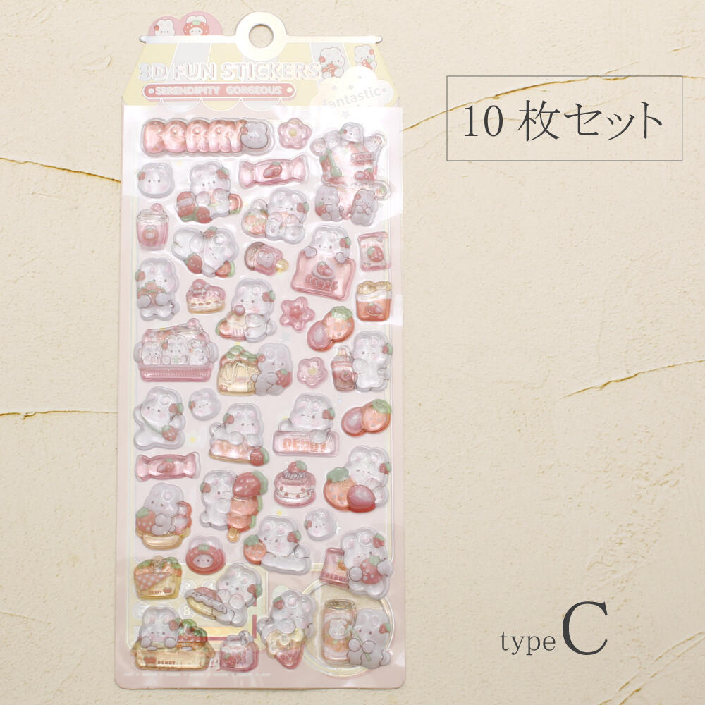 シール ステッカー ぷっくり 立体 3D かたい 硬い 可愛い 動物 うさぎ ウサギ いちご イチゴ 苺 Z