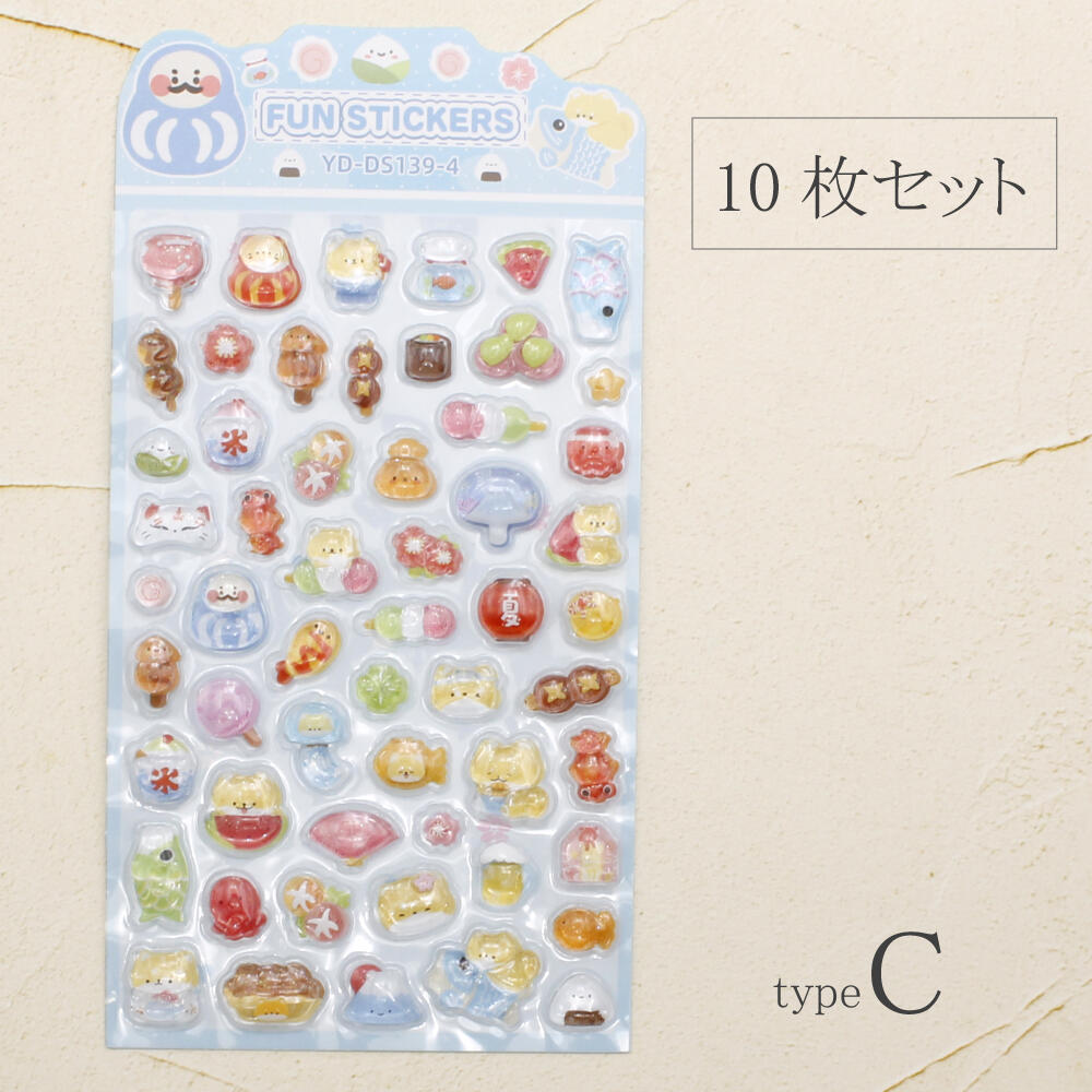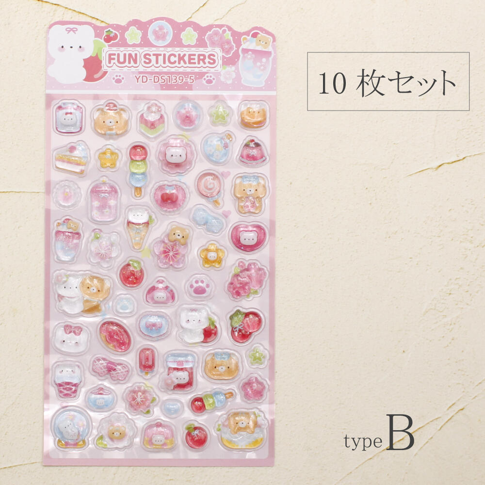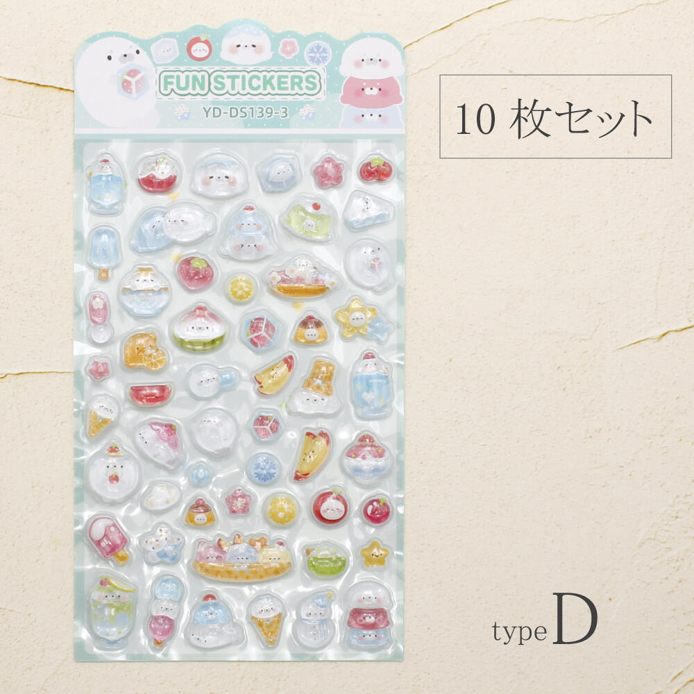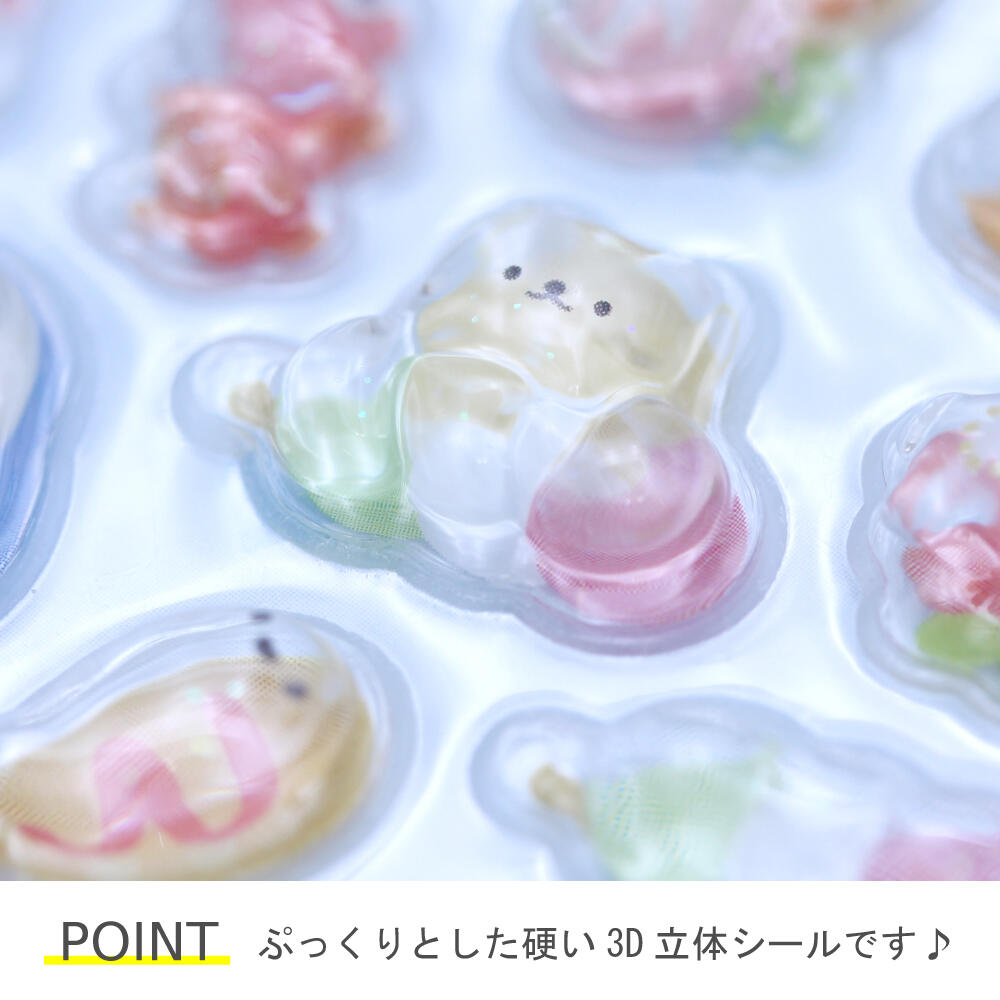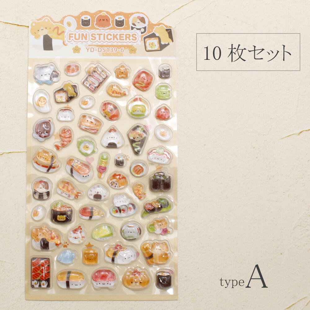 シール ステッカー ぷっくり 立体 3D かたい 硬い 可愛い 猫 クマ 柴犬 アザラシ うさぎ 食べ物 Z