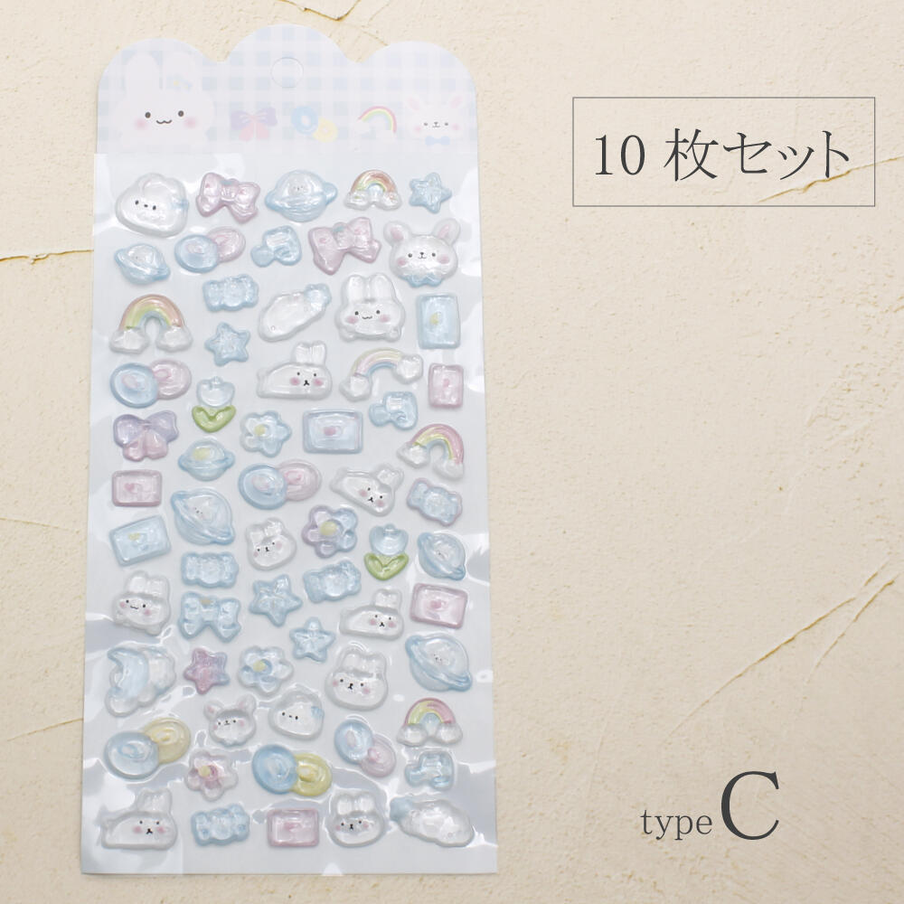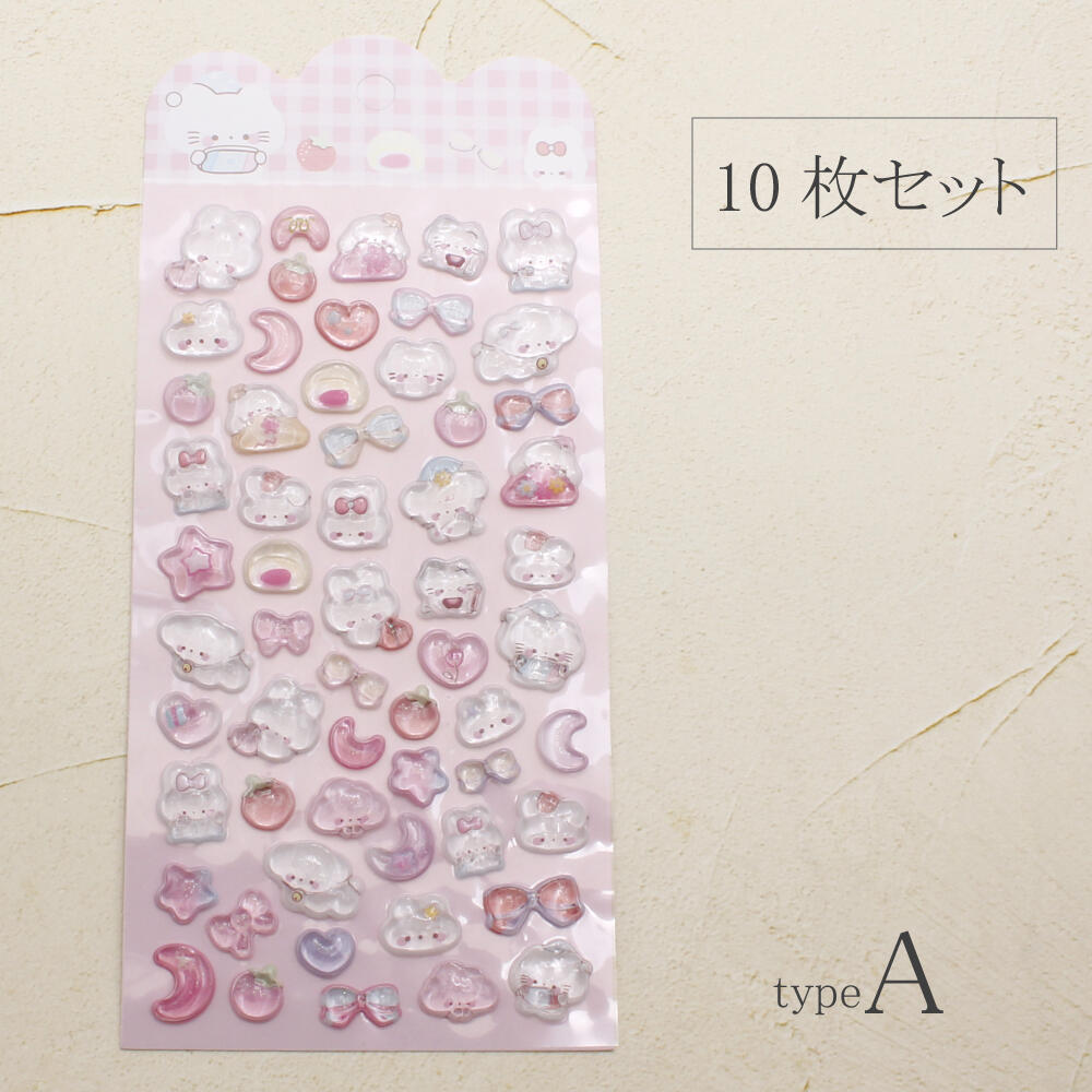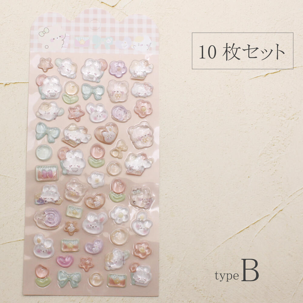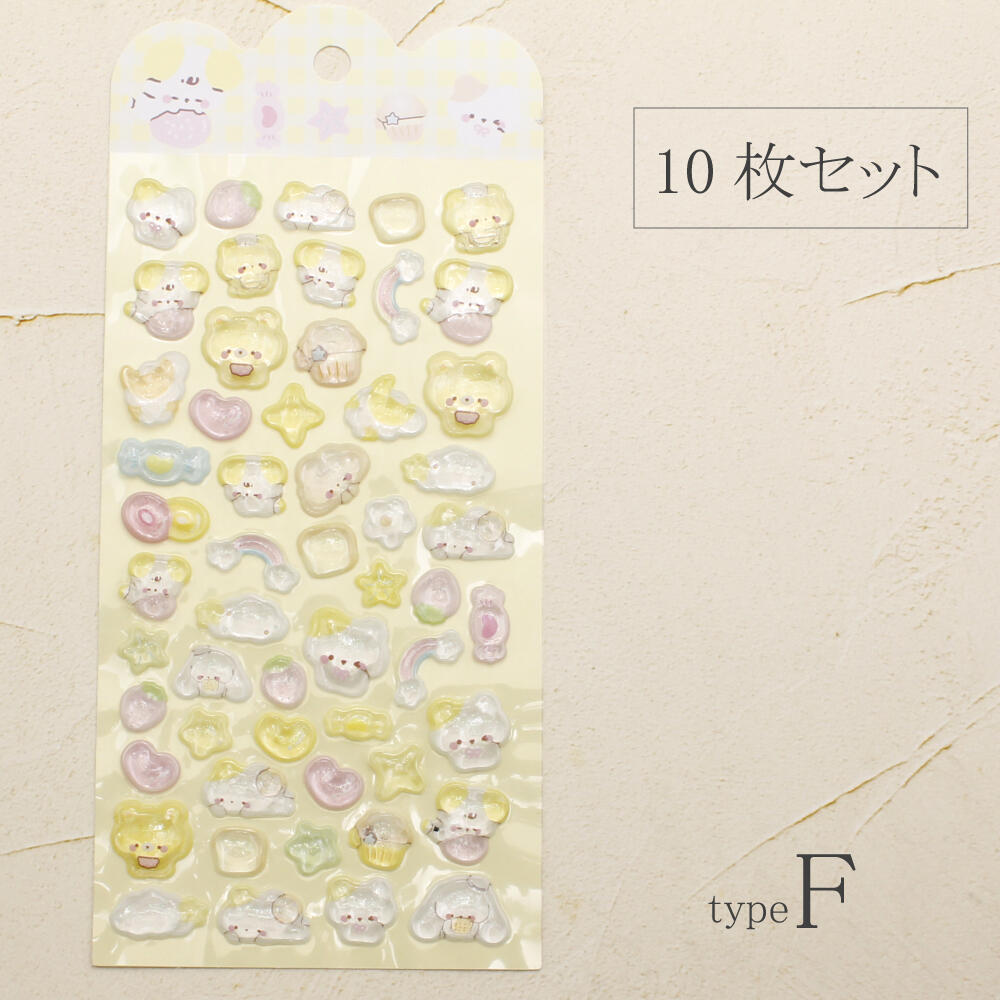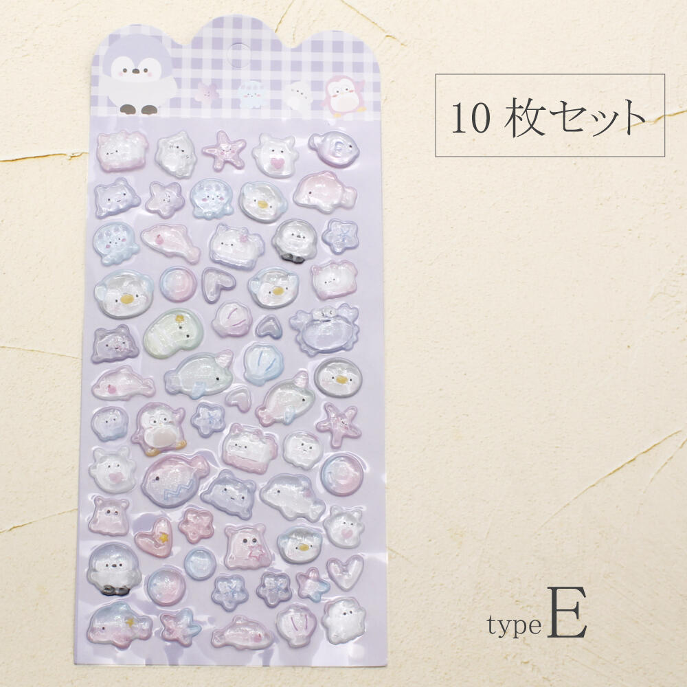 シール ステッカー ぷっくり 立体 3D かたい 硬い 可愛い 動物 猫 クマ うさぎ パンダ ペンギン 犬 Z